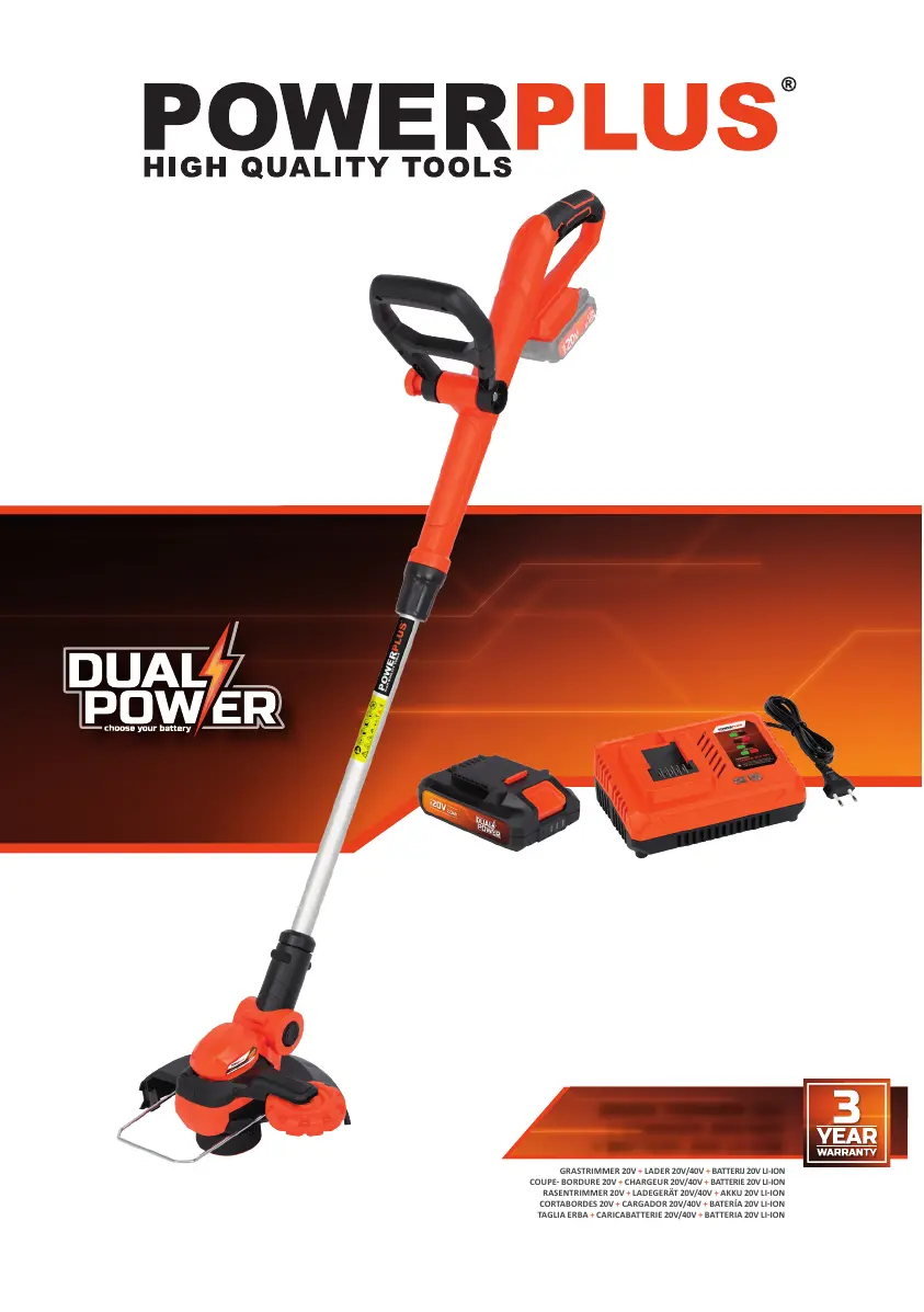Lies die bedienungsanleitung für Powerplus POWDPG75420 (259 Seiten) kostenlos online; sie gehört zur Kategorie Rasentrimmer. Dieses Handbuch wurde von 17 Personen als hilfreich bewertet und erhielt im Schnitt 4.7 Sterne aus 9 Bewertungen. Hast du eine Frage zu Powerplus POWDPG75420 oder möchtest du andere Nutzer dieses Produkts befragen? Stelle eine Frage