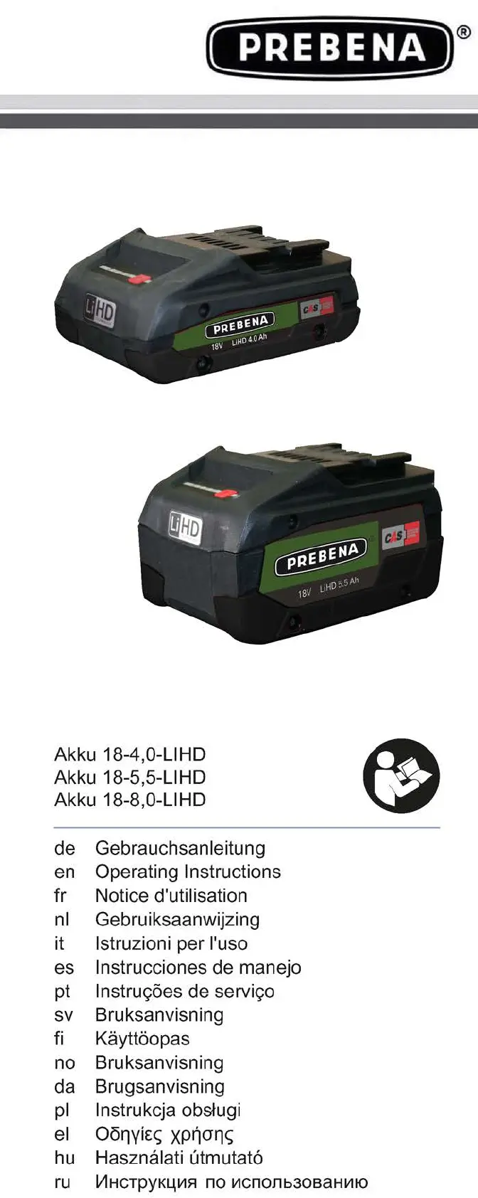 Lies die bedienungsanleitung für Prebena Akku 18-4,0-LiHD (32 Seiten) kostenlos online; sie gehört zur Kategorie Nicht kategorisiert. Dieses Handbuch wurde von 17 Personen als hilfreich bewertet und erhielt im Schnitt 3.8 Sterne aus 9 Bewertungen. Hast du eine Frage zu Prebena Akku 18-4,0-LiHD oder möchtest du andere Nutzer dieses Produkts befragen? Stelle eine Frage