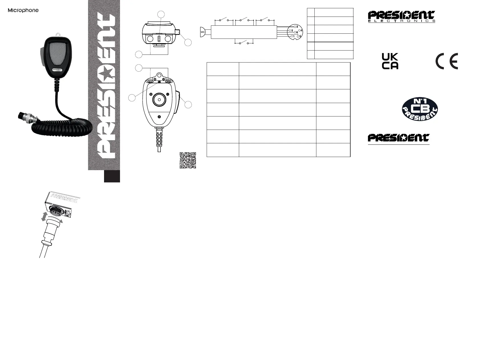 Compatible with PRESIDENT radios* equipped with a 6-pin microphone socket