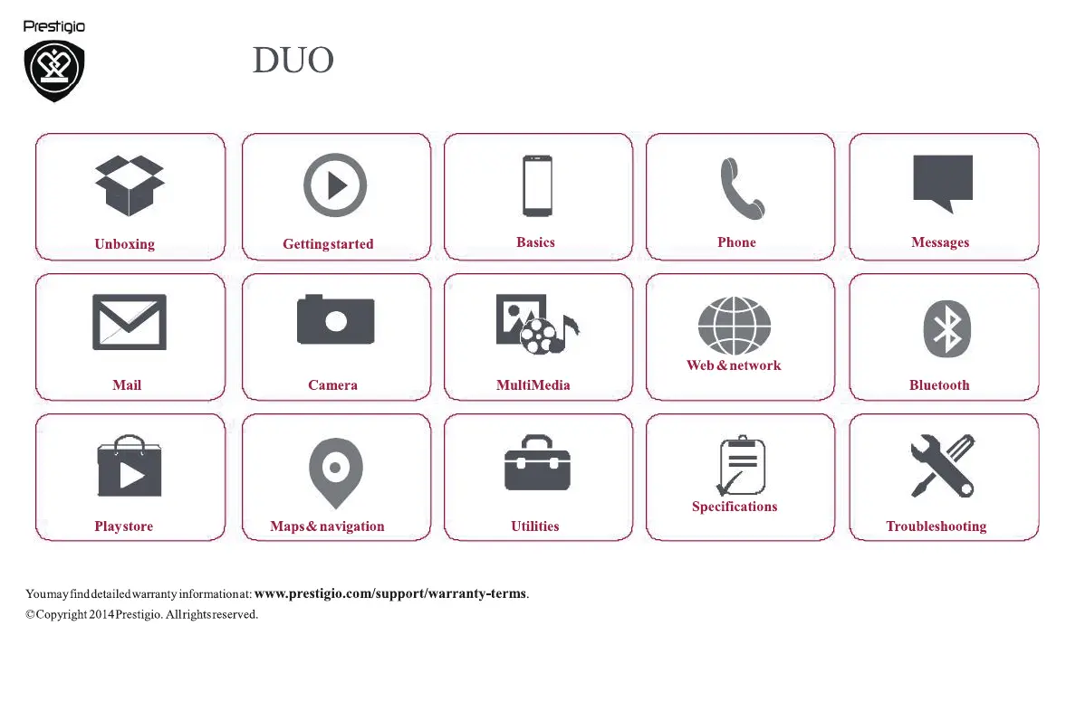 Lies die bedienungsanleitung für Prestigio Grace Q5 (39 Seiten) kostenlos online; sie gehört zur Kategorie Smartphone. Dieses Handbuch wurde von 9 Personen als hilfreich bewertet und erhielt im Schnitt 3.5 Sterne aus 5 Bewertungen. Hast du eine Frage zu Prestigio Grace Q5 oder möchtest du andere Nutzer dieses Produkts befragen? Stelle eine Frage