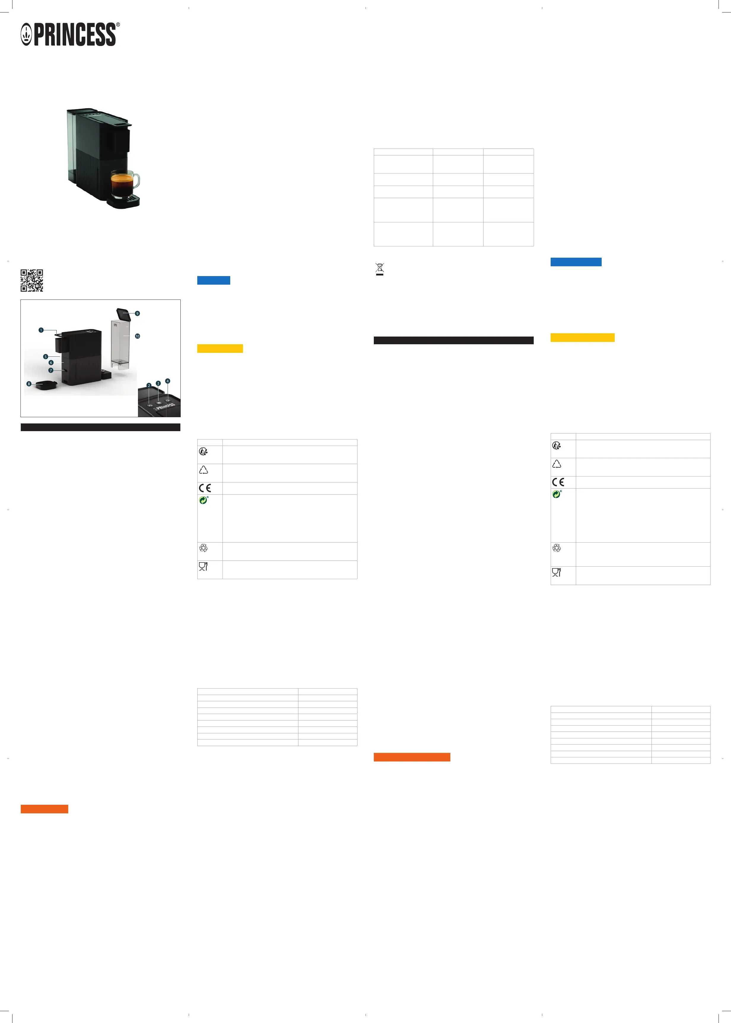 Lies die bedienungsanleitung für Princess 249423 (6 Seiten) kostenlos online; sie gehört zur Kategorie Kaffeemaschine. Dieses Handbuch wurde von 2 Personen als hilfreich bewertet und erhielt im Schnitt 4.1 Sterne aus 5 Bewertungen. Hast du eine Frage zu Princess 249423 oder möchtest du andere Nutzer dieses Produkts befragen? Stelle eine Frage