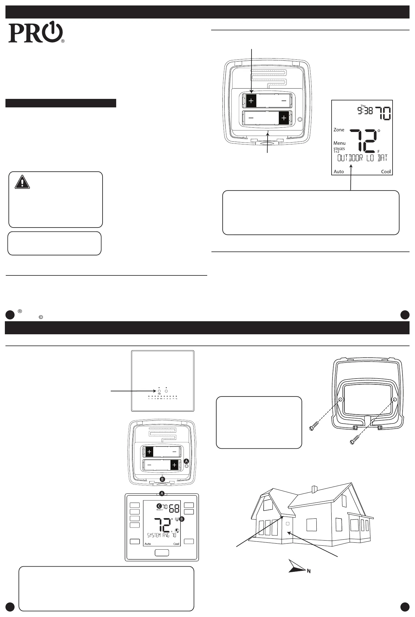 the Main Thermostat will ash OUTDOOR LO BAT as seen