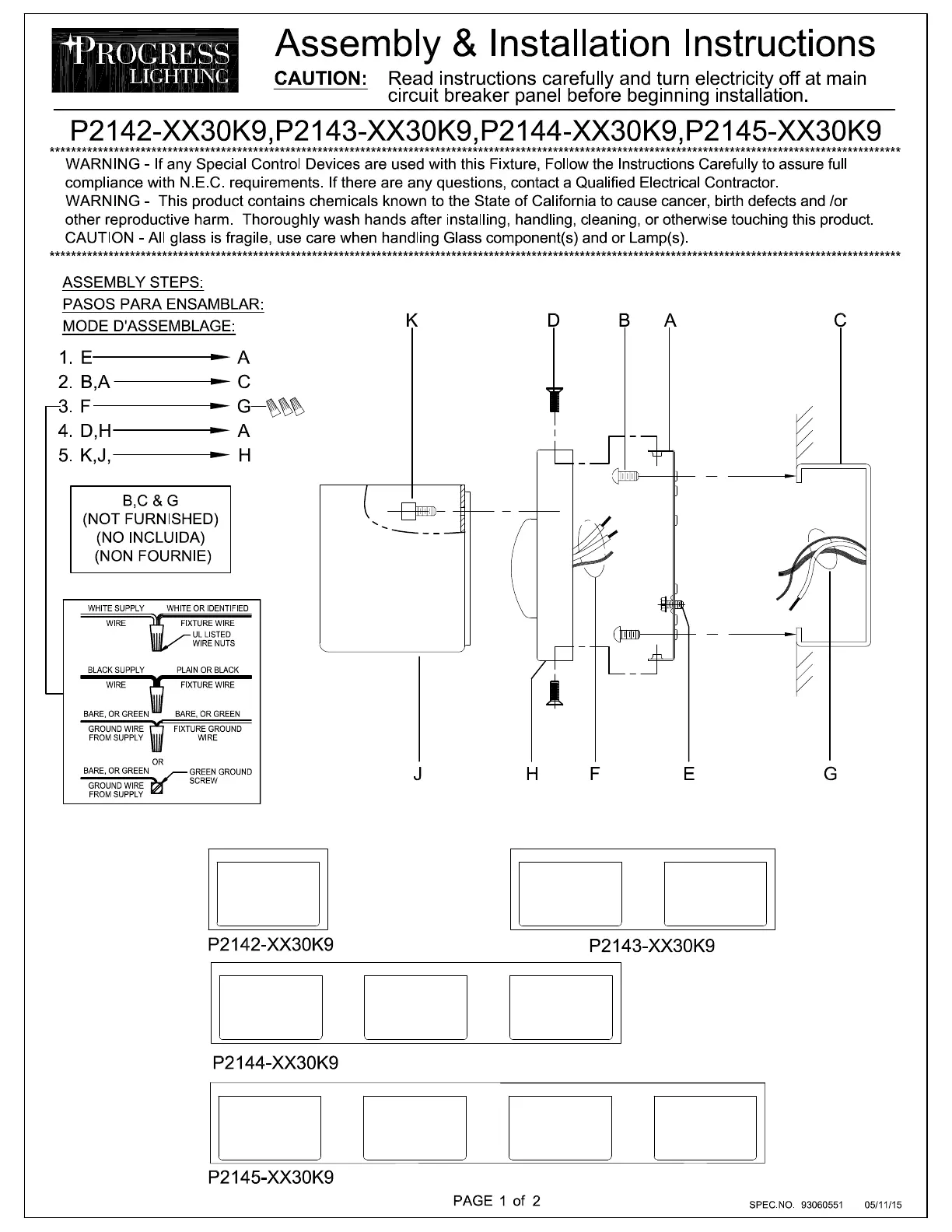 Lies die bedienungsanleitung für Progress Lighting P2145-1530K9 (2 Seiten) kostenlos online; sie gehört zur Kategorie Beleuchtung. Dieses Handbuch wurde von 2 Personen als hilfreich bewertet und erhielt im Schnitt 4.3 Sterne aus 8 Bewertungen. Hast du eine Frage zu Progress Lighting P2145-1530K9 oder möchtest du andere Nutzer dieses Produkts befragen? Stelle eine Frage