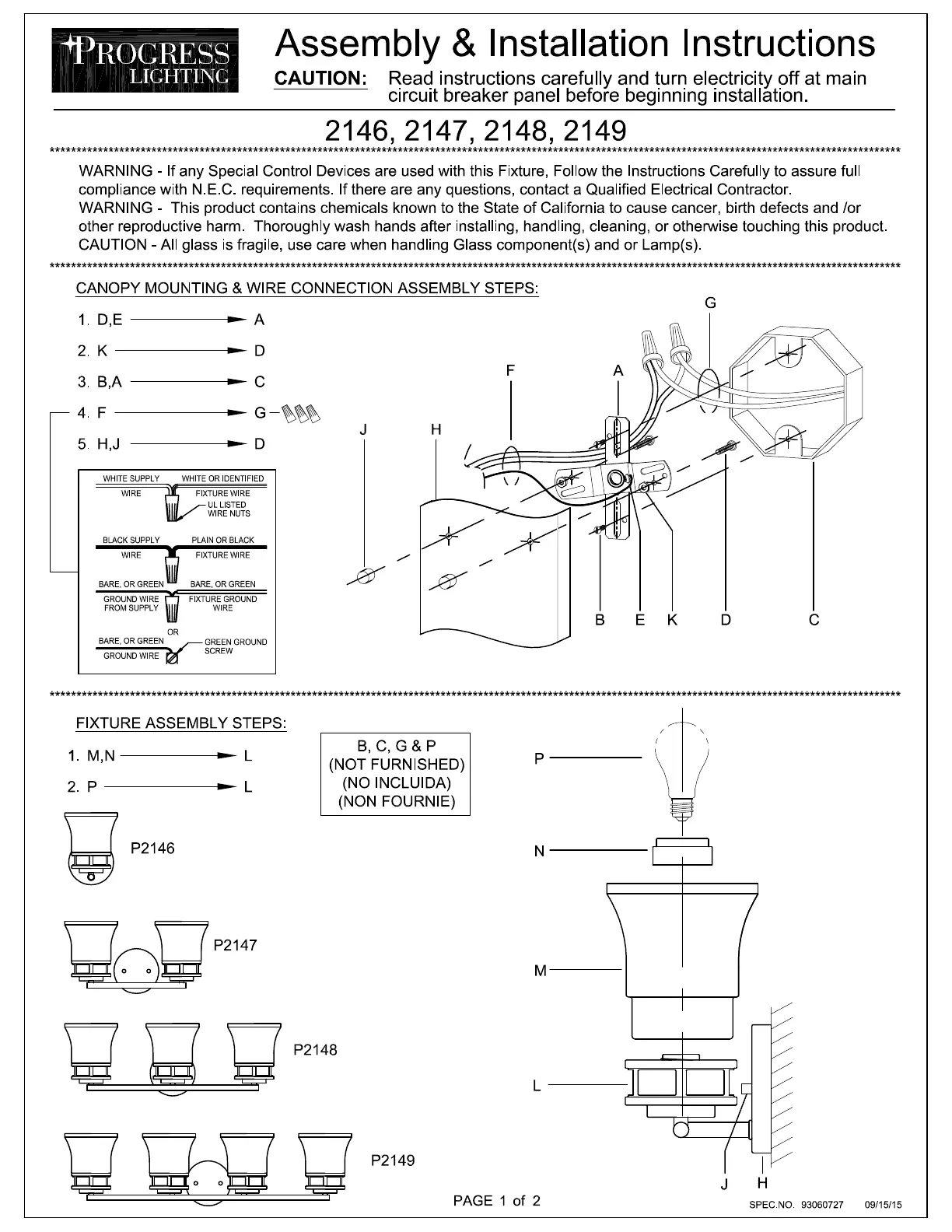 Lies die bedienungsanleitung für Progress Lighting P2148 (2 Seiten) kostenlos online; sie gehört zur Kategorie Beleuchtung. Dieses Handbuch wurde von 3 Personen als hilfreich bewertet und erhielt im Schnitt 4.7 Sterne aus 8 Bewertungen. Hast du eine Frage zu Progress Lighting P2148 oder möchtest du andere Nutzer dieses Produkts befragen? Stelle eine Frage