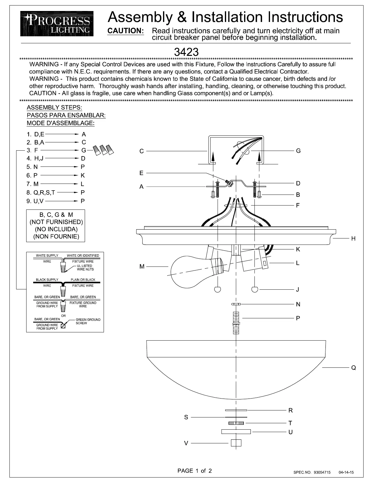 Lies die bedienungsanleitung für Progress Lighting P3423 (2 Seiten) kostenlos online; sie gehört zur Kategorie Beleuchtung. Dieses Handbuch wurde von 2 Personen als hilfreich bewertet und erhielt im Schnitt 4.8 Sterne aus 8 Bewertungen. Hast du eine Frage zu Progress Lighting P3423 oder möchtest du andere Nutzer dieses Produkts befragen? Stelle eine Frage