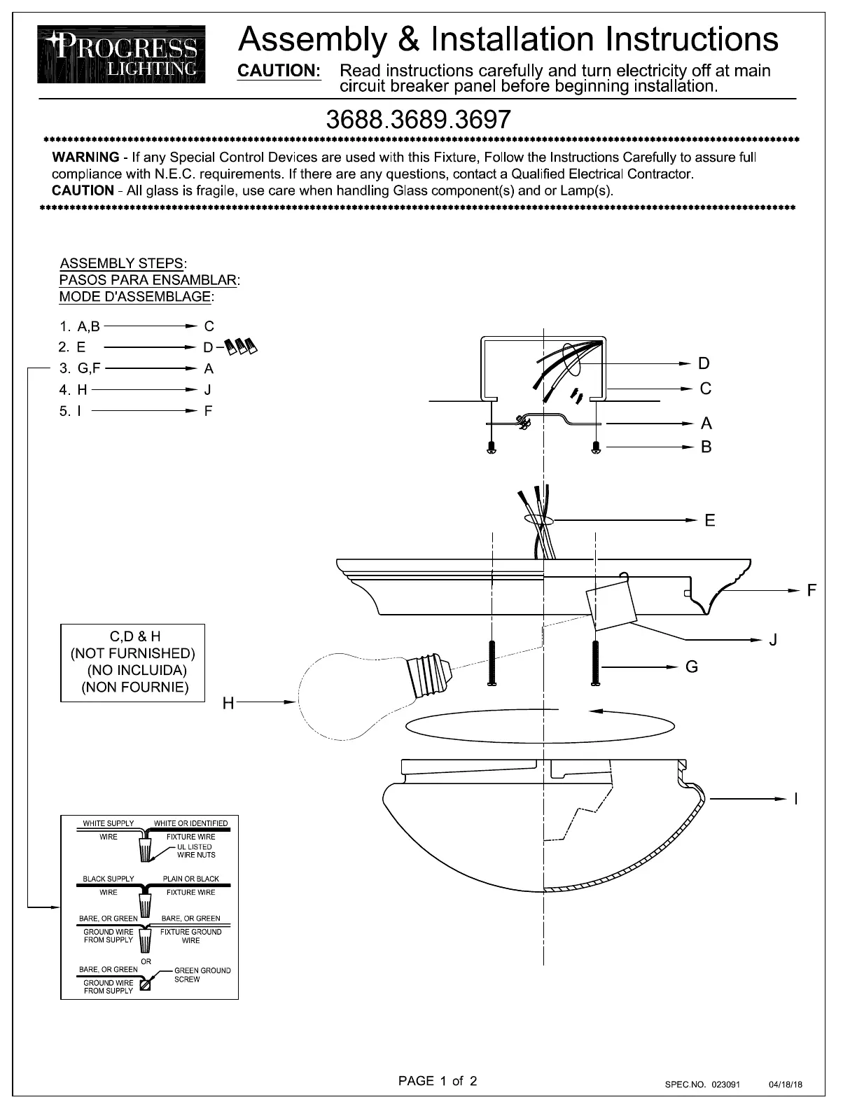 Lies die bedienungsanleitung für Progress Lighting P3688 (2 Seiten) kostenlos online; sie gehört zur Kategorie Beleuchtung. Dieses Handbuch wurde von 2 Personen als hilfreich bewertet und erhielt im Schnitt 4.5 Sterne aus 4 Bewertungen. Hast du eine Frage zu Progress Lighting P3688 oder möchtest du andere Nutzer dieses Produkts befragen? Stelle eine Frage