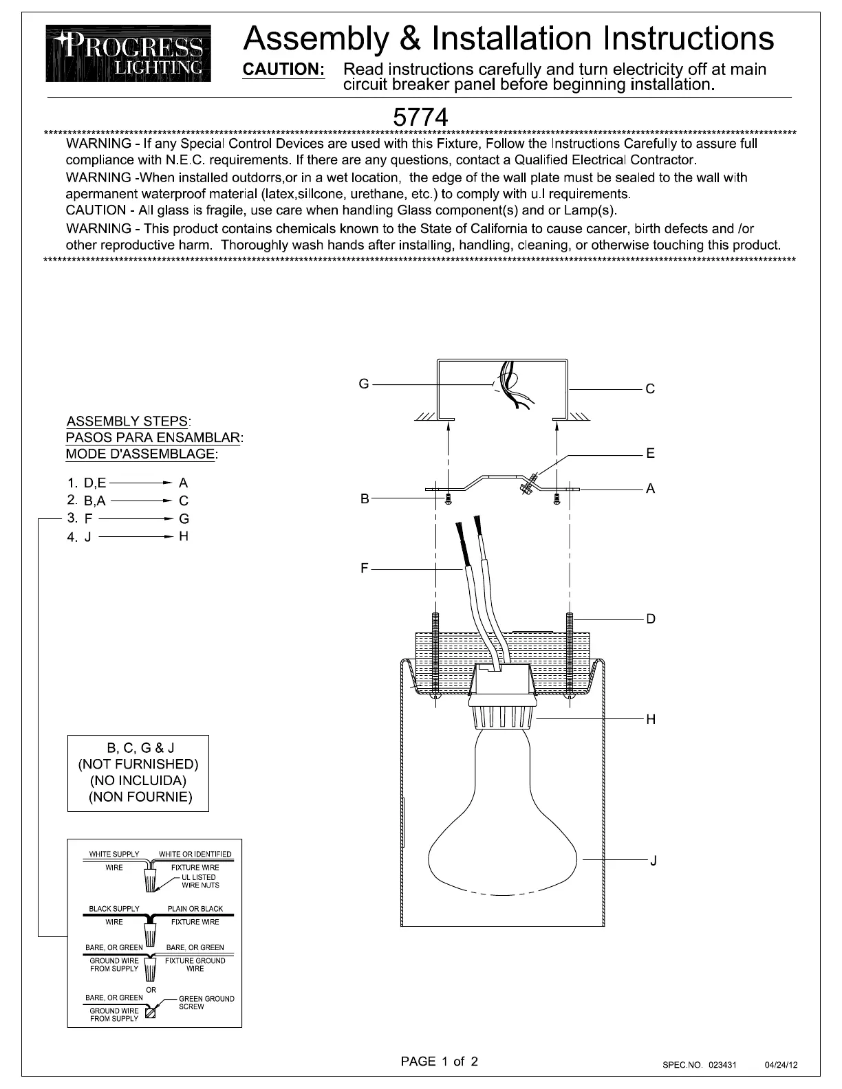 Lies die bedienungsanleitung für Progress Lighting P5774 (2 Seiten) kostenlos online; sie gehört zur Kategorie Beleuchtung. Dieses Handbuch wurde von 3 Personen als hilfreich bewertet und erhielt im Schnitt 4.3 Sterne aus 7 Bewertungen. Hast du eine Frage zu Progress Lighting P5774 oder möchtest du andere Nutzer dieses Produkts befragen? Stelle eine Frage