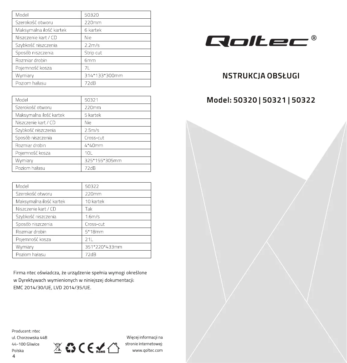 Lies die bedienungsanleitung für Qoltec 50320 (2 Seiten) kostenlos online; sie gehört zur Kategorie Aktenvernichter. Dieses Handbuch wurde von 35 Personen als hilfreich bewertet und erhielt im Schnitt 4.8 Sterne aus 18 Bewertungen. Hast du eine Frage zu Qoltec 50320 oder möchtest du andere Nutzer dieses Produkts befragen? Stelle eine Frage