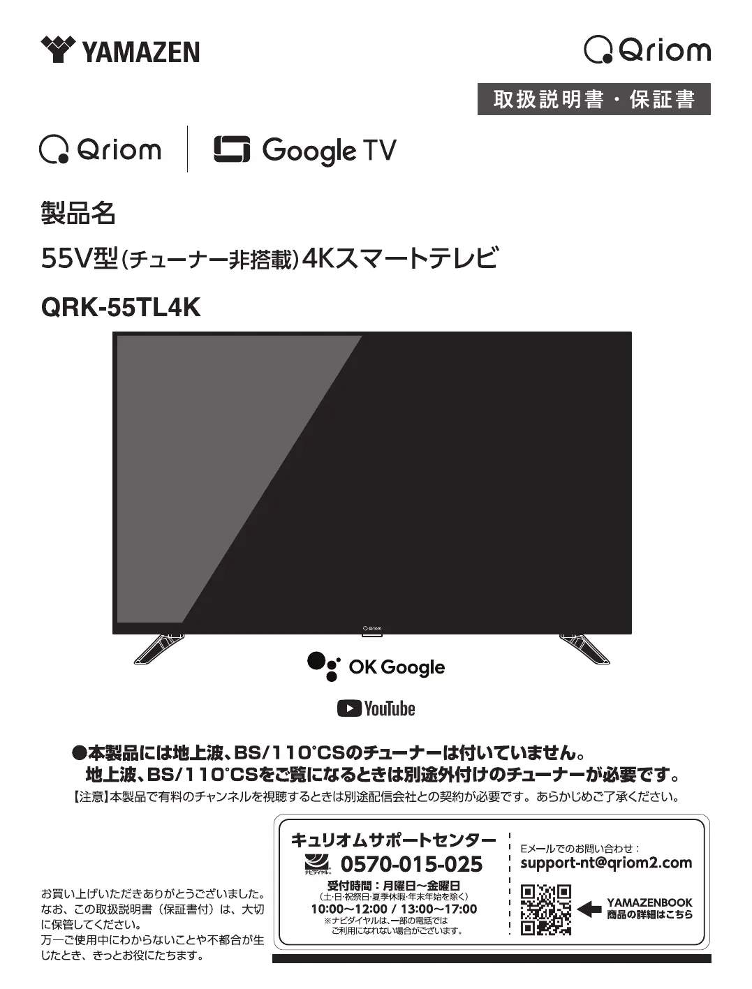 Lies die bedienungsanleitung für Qriom QRK-55TL4K (23 Seiten) kostenlos online; sie gehört zur Kategorie Fernseher. Dieses Handbuch wurde von 11 Personen als hilfreich bewertet und erhielt im Schnitt 4.7 Sterne aus 6 Bewertungen. Hast du eine Frage zu Qriom QRK-55TL4K oder möchtest du andere Nutzer dieses Produkts befragen? Stelle eine Frage