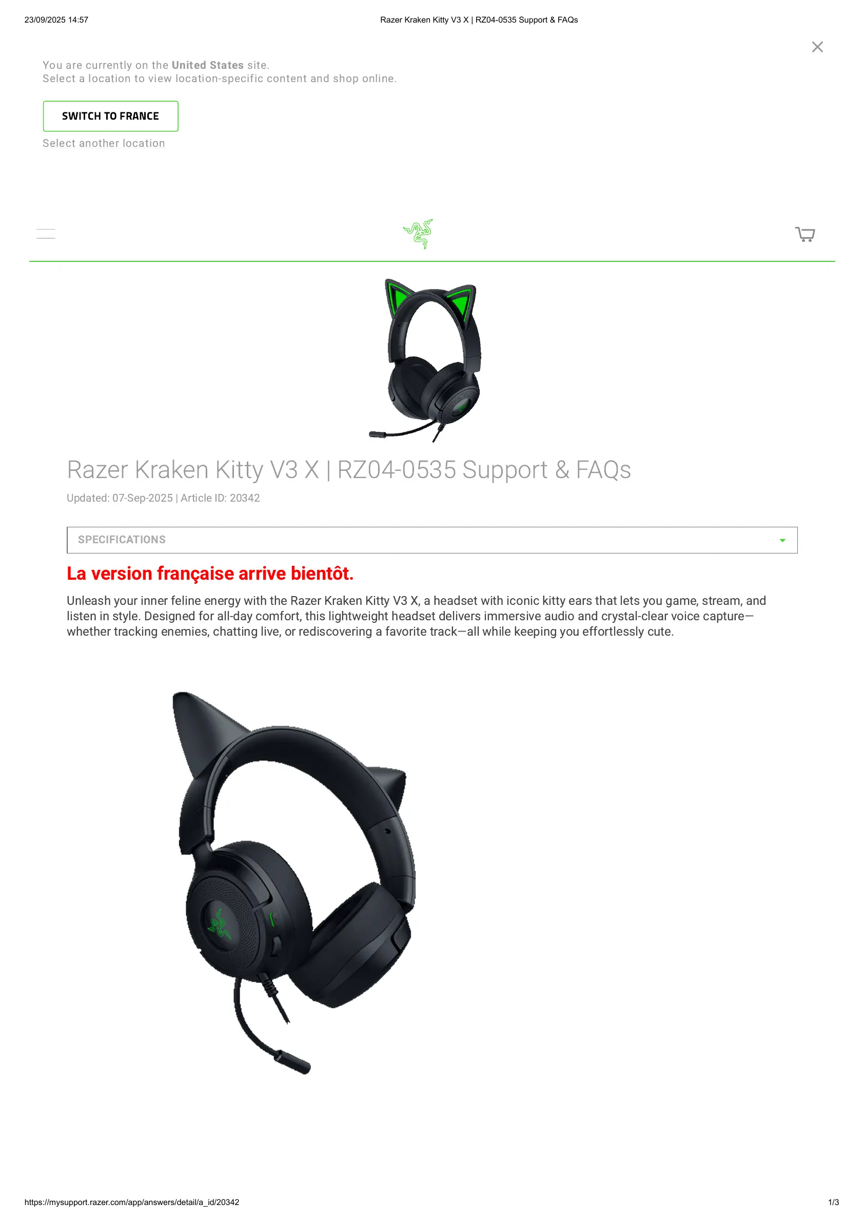 RazerKrakenKittyV3X|RZ04-0535Support&FAQs