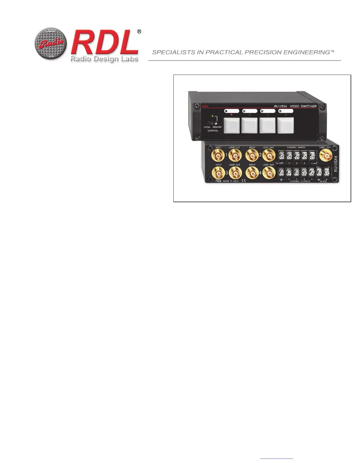 to be switched on. In this mode, the RU-VSX4 may be controlled by an RDL D SERIES-RC4RU