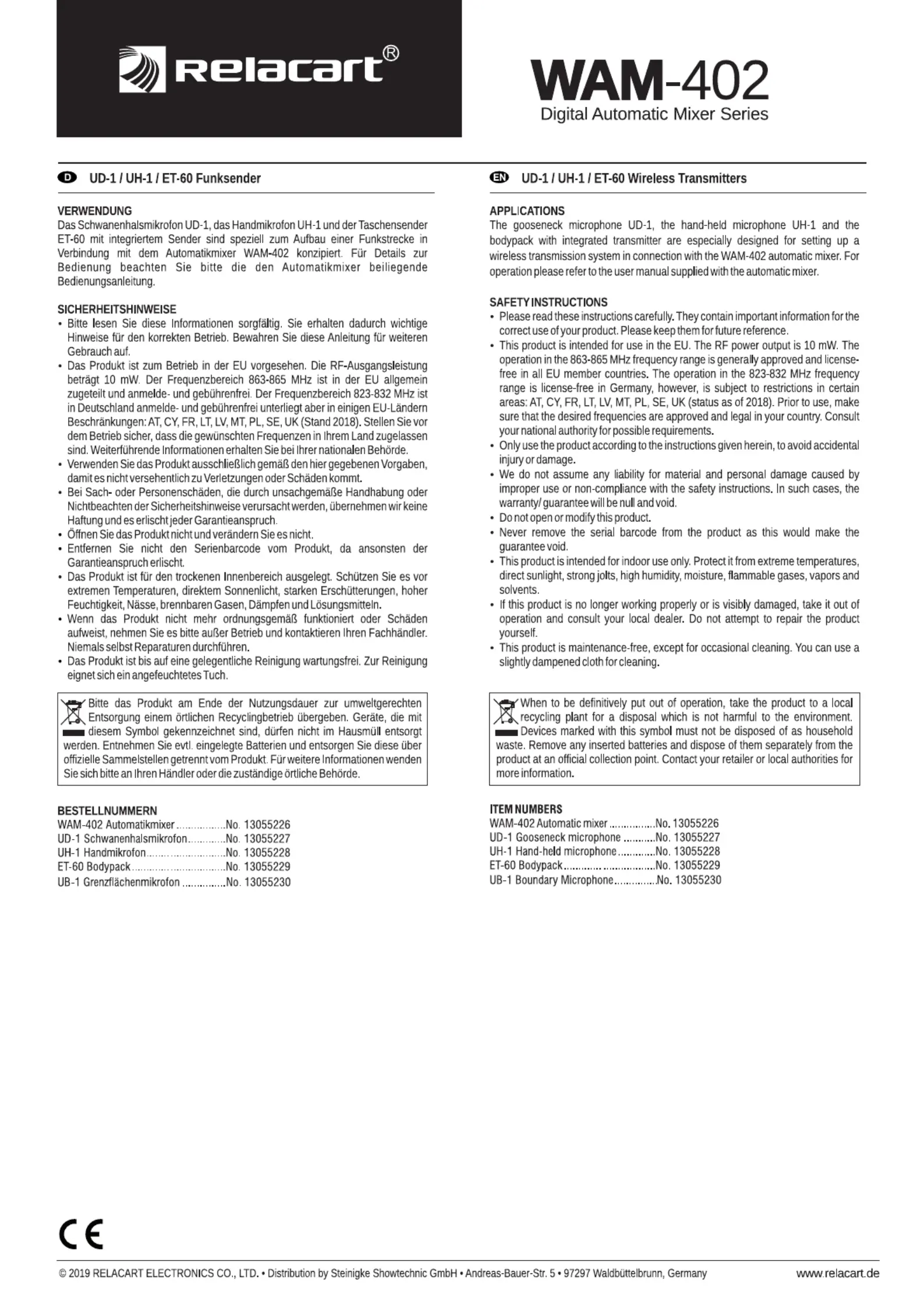 Bedienungsanleitung Mikrofon Relacart