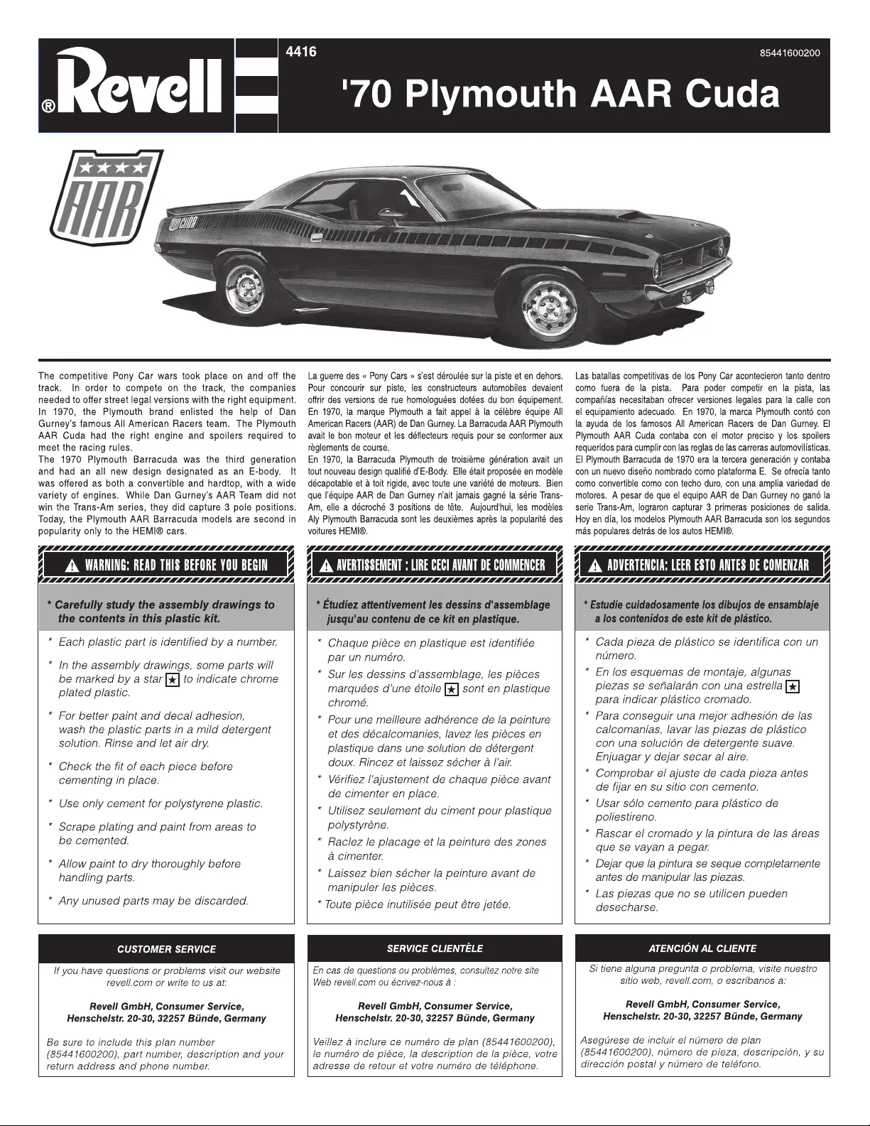 Revell '70 Plymouth AAR Cuda Bedienungsanleitung