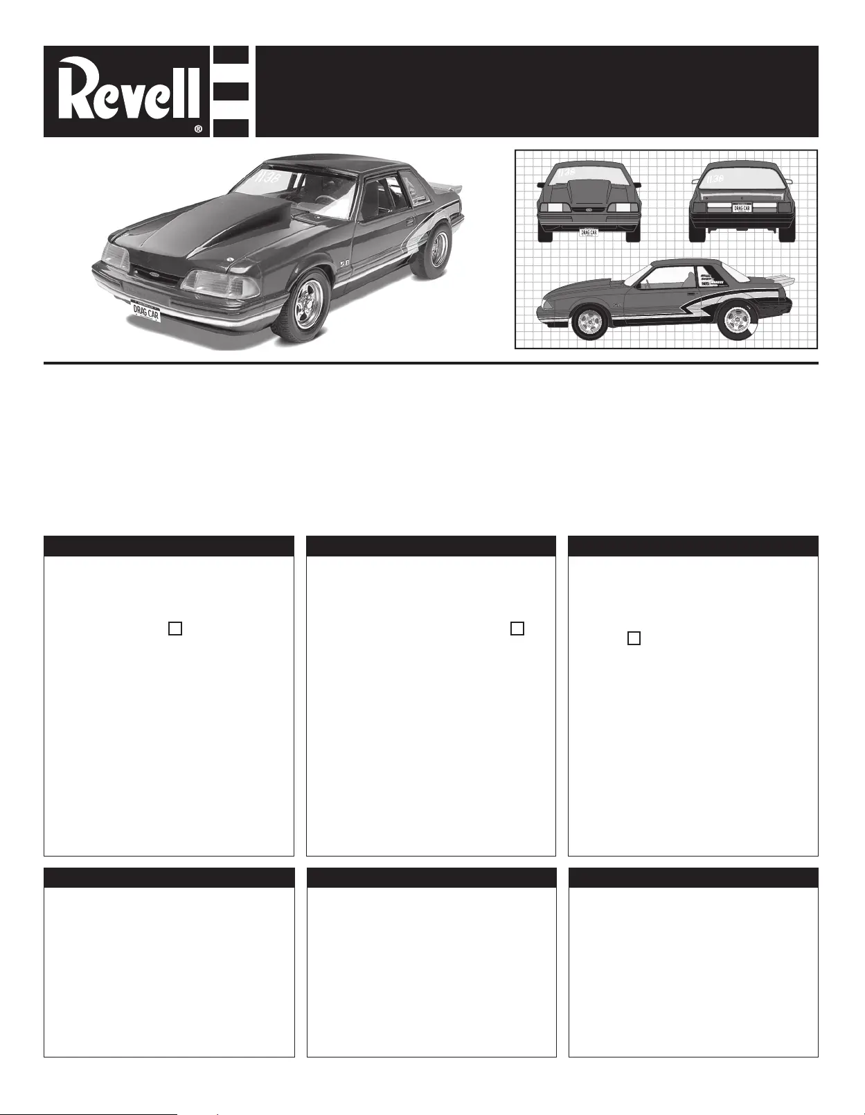 Lies die bedienungsanleitung für Revell '90 Mustang LX 5.0 Drag Racer (12 Seiten) kostenlos online; sie gehört zur Kategorie Modellbau. Dieses Handbuch wurde von 16 Personen als hilfreich bewertet und erhielt im Schnitt 4.3 Sterne aus 8.5 Bewertungen. Hast du eine Frage zu Revell '90 Mustang LX 5.0 Drag Racer oder möchtest du andere Nutzer dieses Produkts befragen? Stelle eine Frage