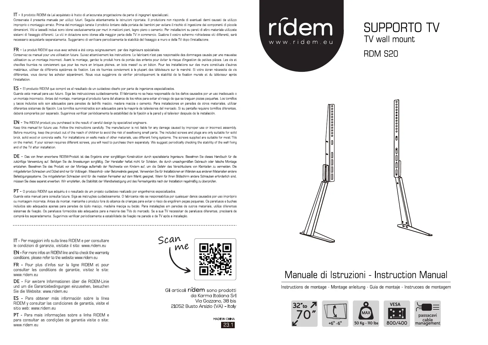 Lies die bedienungsanleitung für Ridem RDM S20 (2 Seiten) kostenlos online; sie gehört zur Kategorie Wandstütze. Dieses Handbuch wurde von 9 Personen als hilfreich bewertet und erhielt im Schnitt 4.6 Sterne aus 5 Bewertungen. Hast du eine Frage zu Ridem RDM S20 oder möchtest du andere Nutzer dieses Produkts befragen? Stelle eine Frage