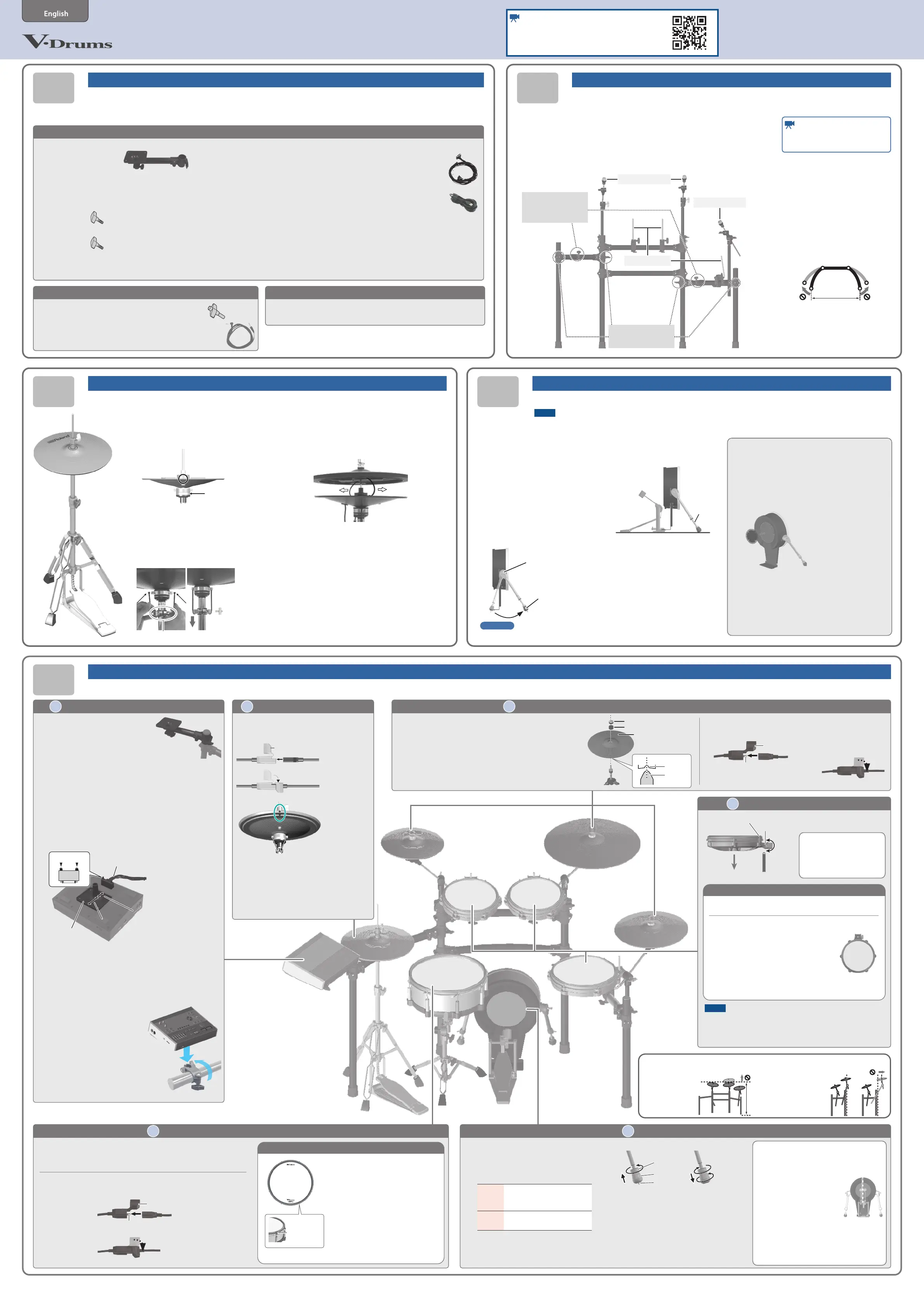 Attach the crash cymbal (CY-12C-T / CY-14R-T) and ride cymbal (CY-18DR)