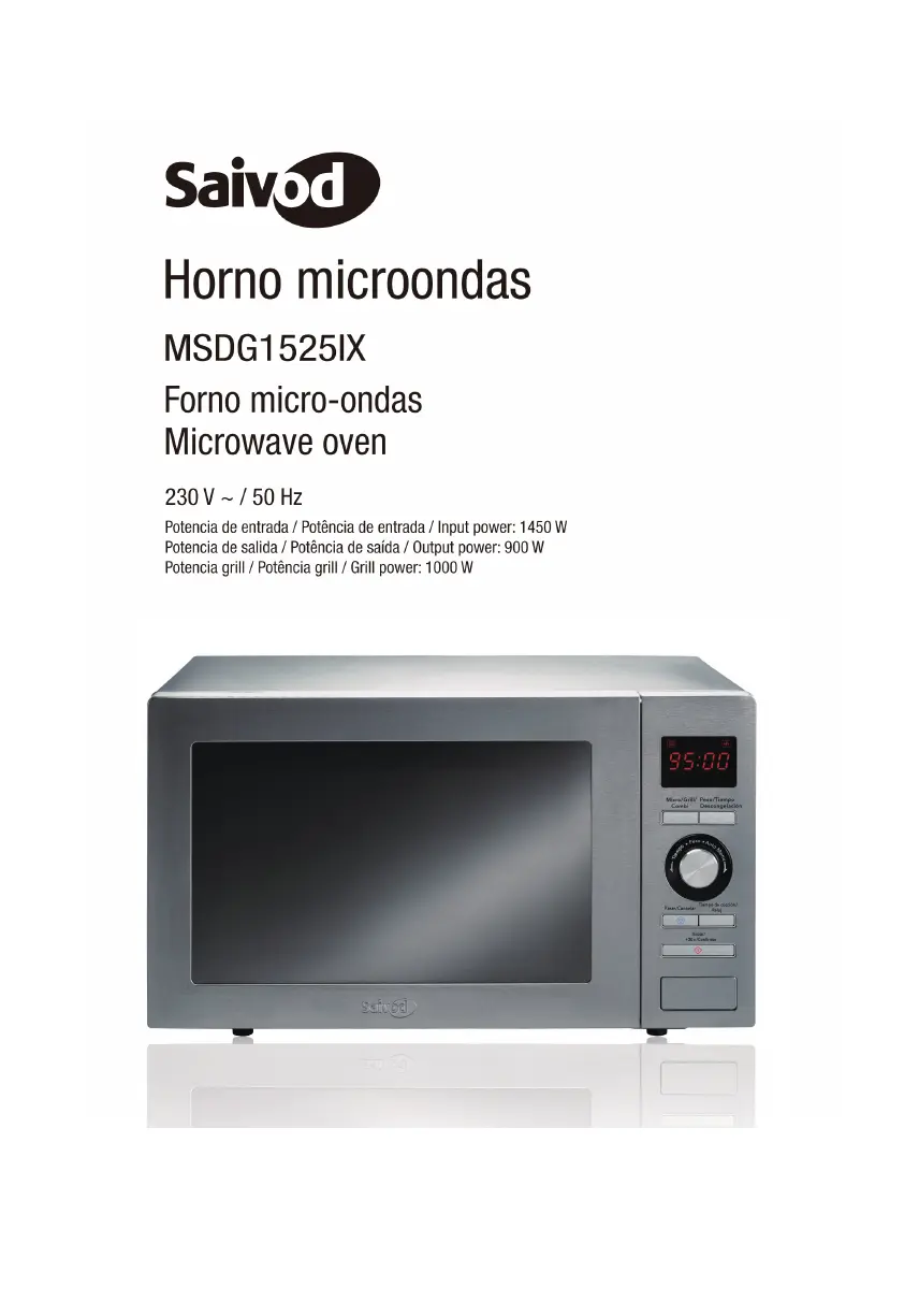 Lies die bedienungsanleitung für Saivod MSDG-1525IX (52 Seiten) kostenlos online; sie gehört zur Kategorie Mikrowelle. Dieses Handbuch wurde von 22 Personen als hilfreich bewertet und erhielt im Schnitt 4.9 Sterne aus 11.5 Bewertungen. Hast du eine Frage zu Saivod MSDG-1525IX oder möchtest du andere Nutzer dieses Produkts befragen? Stelle eine Frage