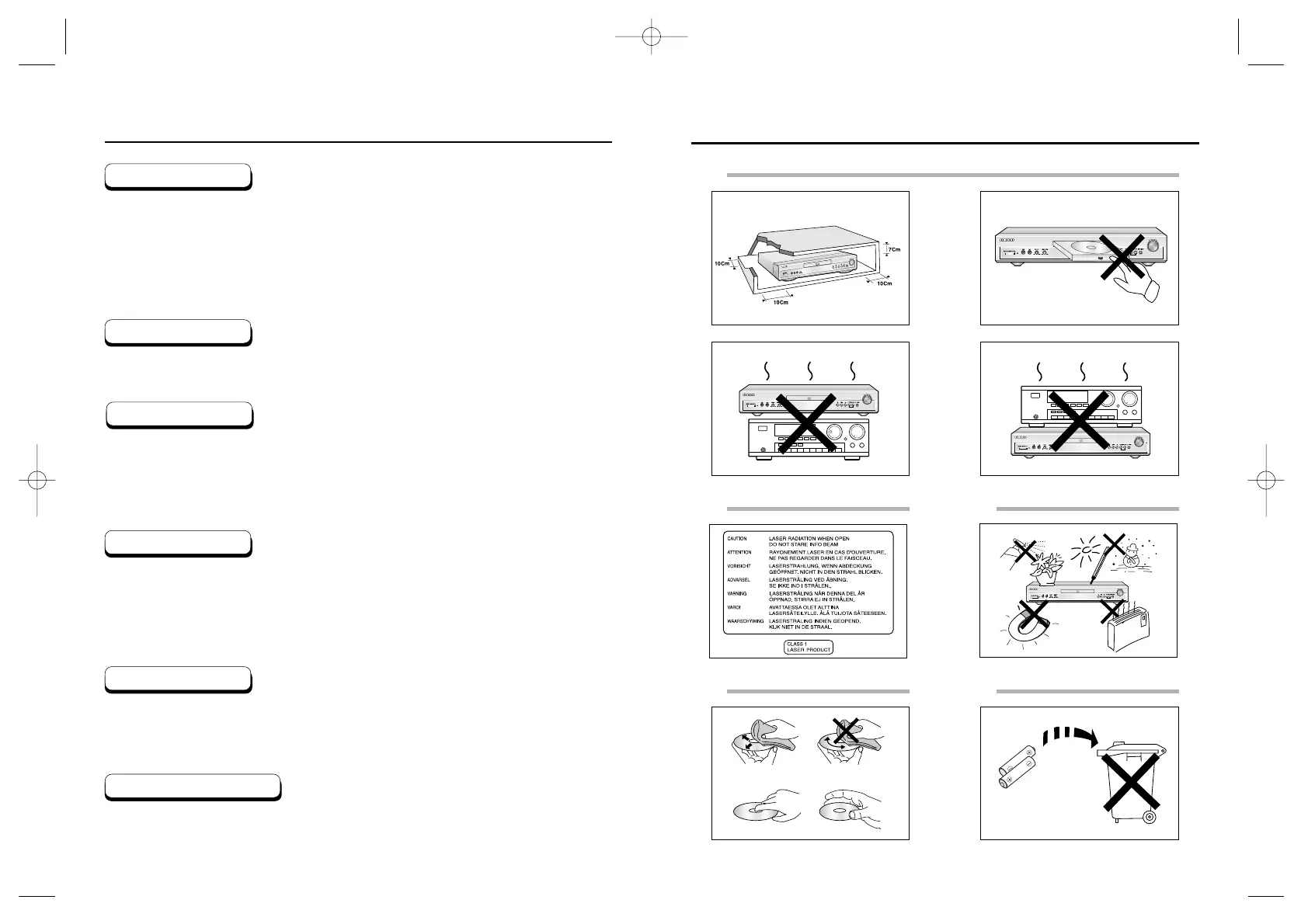 covered. Do not stack other, or heavy devices on top of the player. Do not place the player on