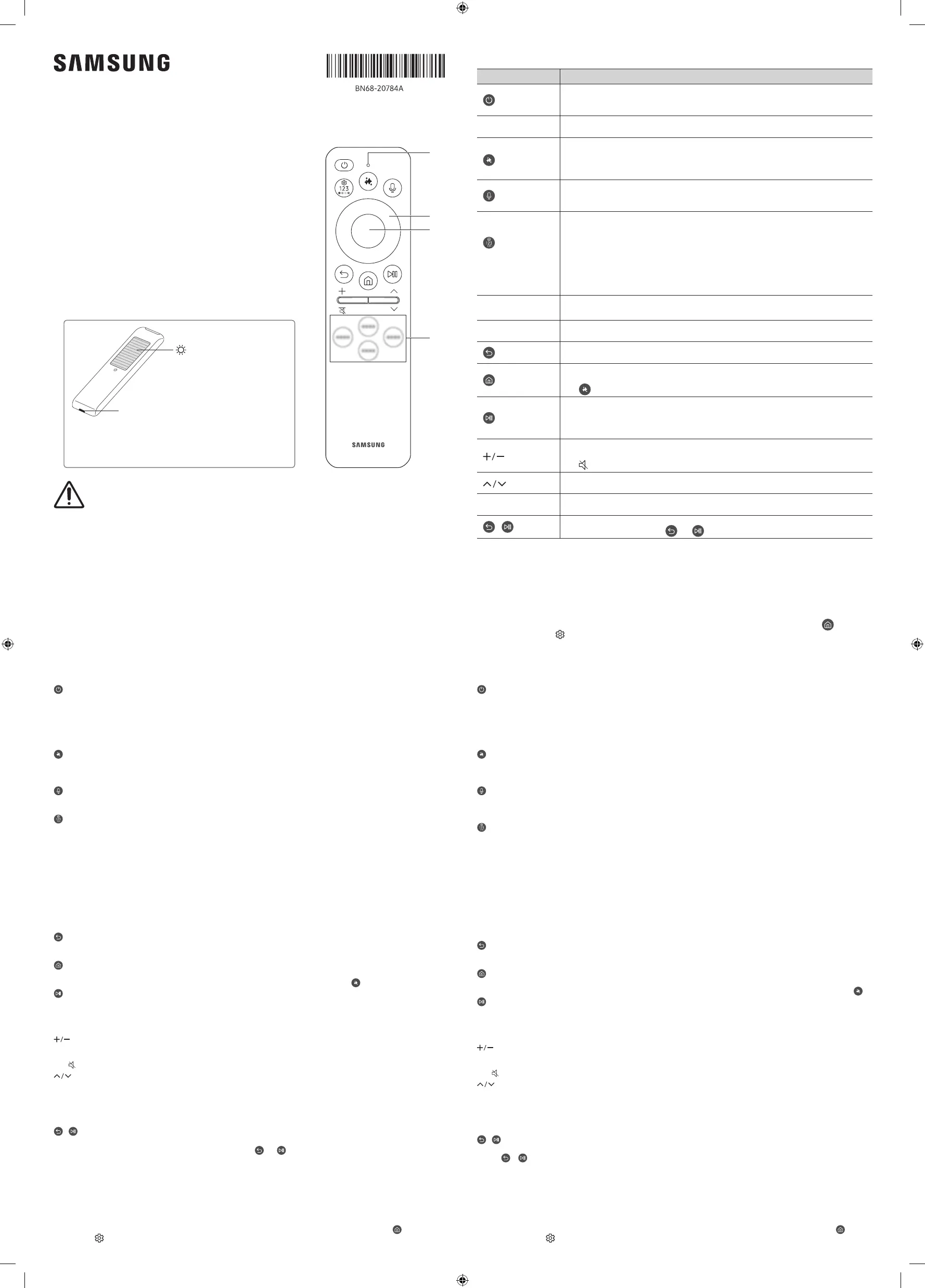 –For specific functions of each button on the Samsung Smart Remote, access the Remote Control Guide ( > left