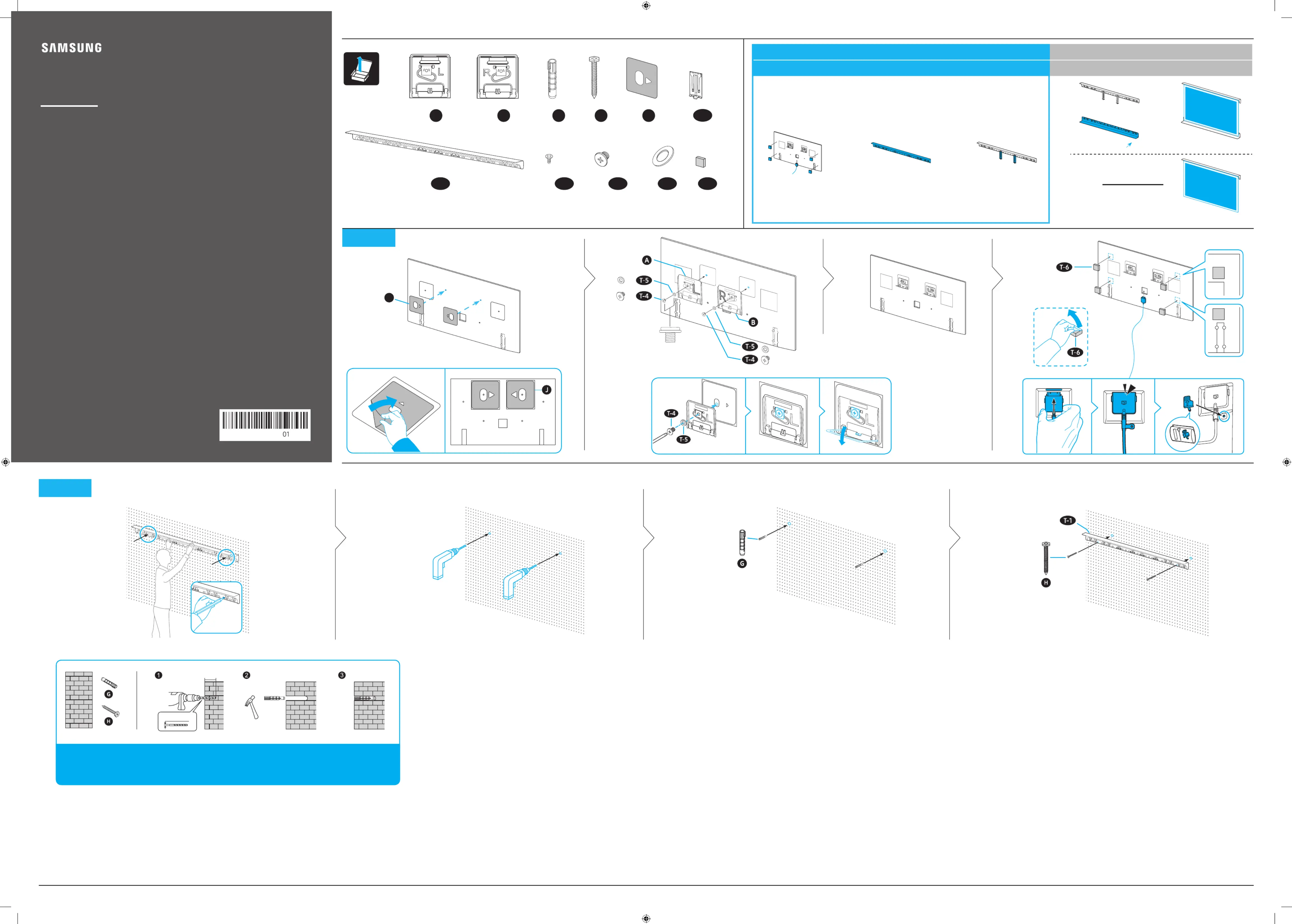 -각 부품당 최소 2개 이상의 벽 스크류를 사용하세요. 설치환경에 따라 여분의