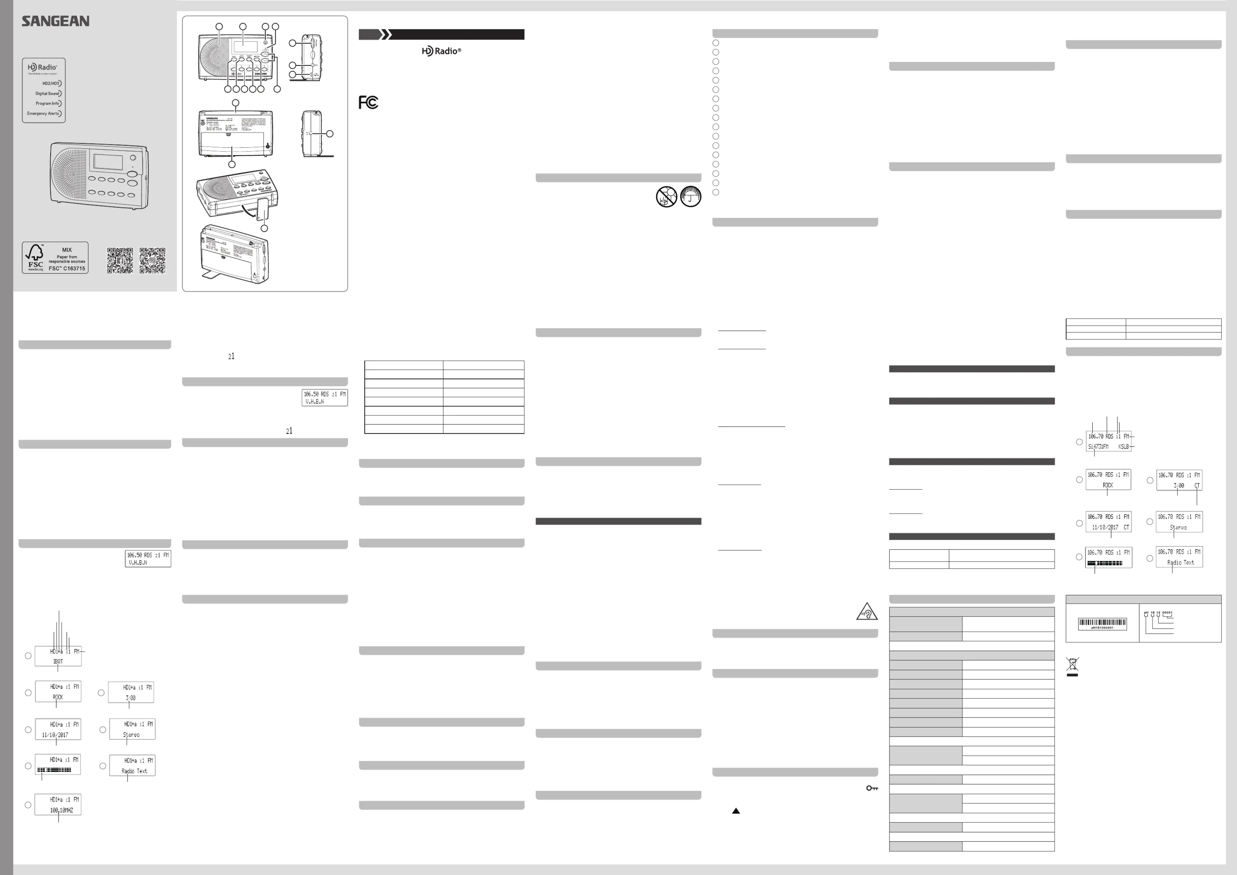 Sangean reserves the right to amend the specifications without notice.