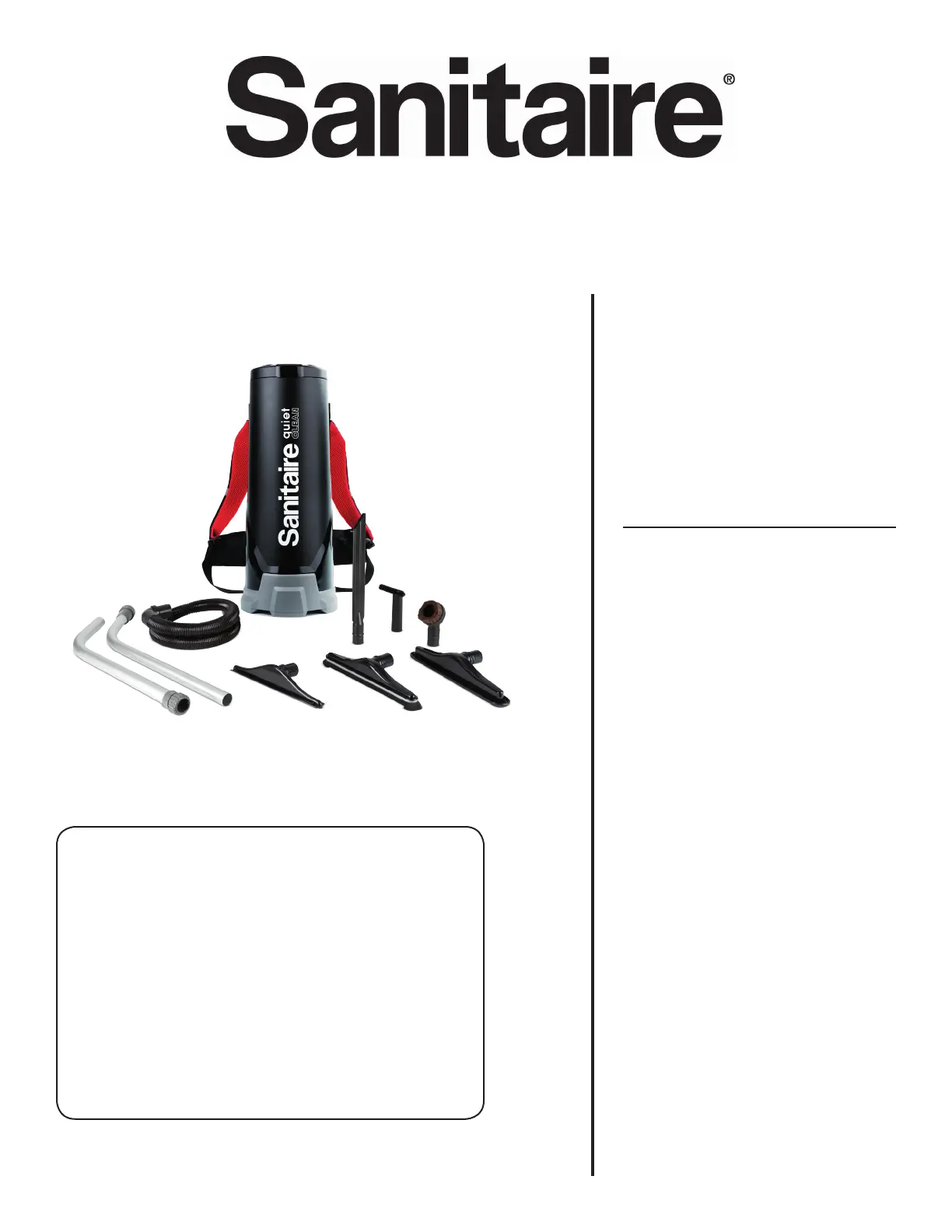 Lies die bedienungsanleitung für Sanitaire TRANSPORT QuietClean SC530B (18 Seiten) kostenlos online; sie gehört zur Kategorie Staubsauger. Dieses Handbuch wurde von 24 Personen als hilfreich bewertet und erhielt im Schnitt 4.2 Sterne aus 2 Bewertungen. Hast du eine Frage zu Sanitaire TRANSPORT QuietClean SC530B oder möchtest du andere Nutzer dieses Produkts befragen? Stelle eine Frage