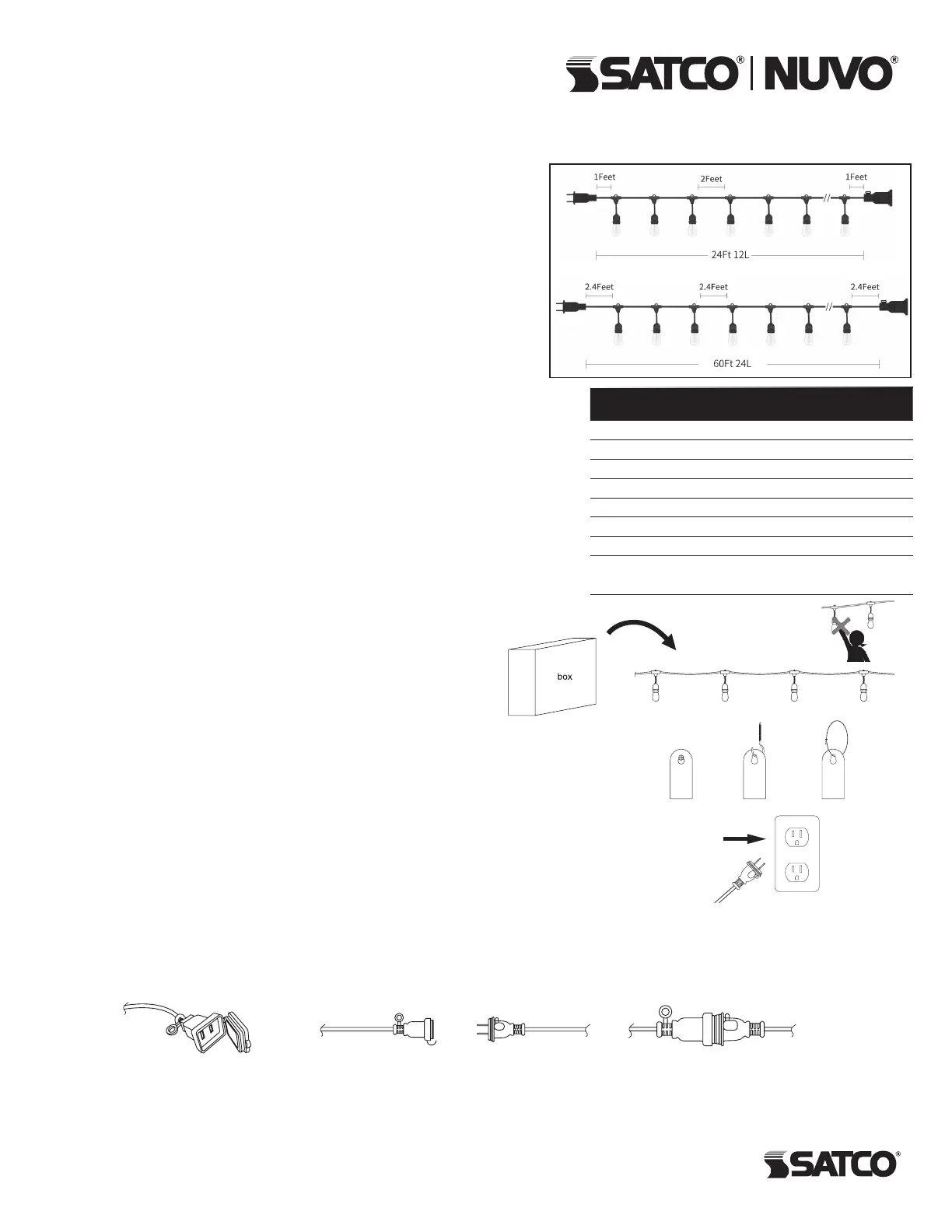 • 24 or 60 ft. heavy duty string light with 12 or 24 sockets.
