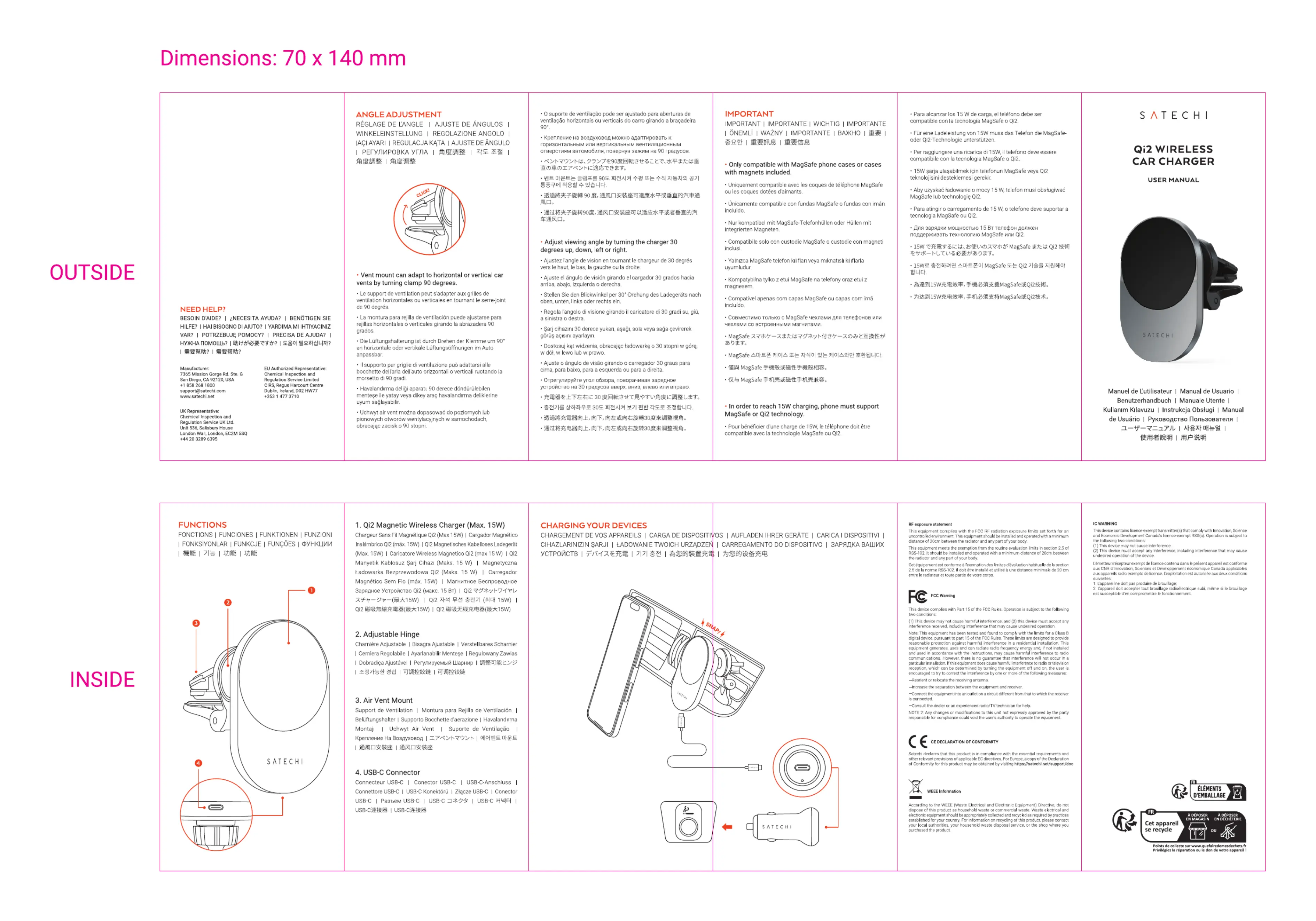 Satechi Qi2 Wireless Car Charger Bedienungsanleitung