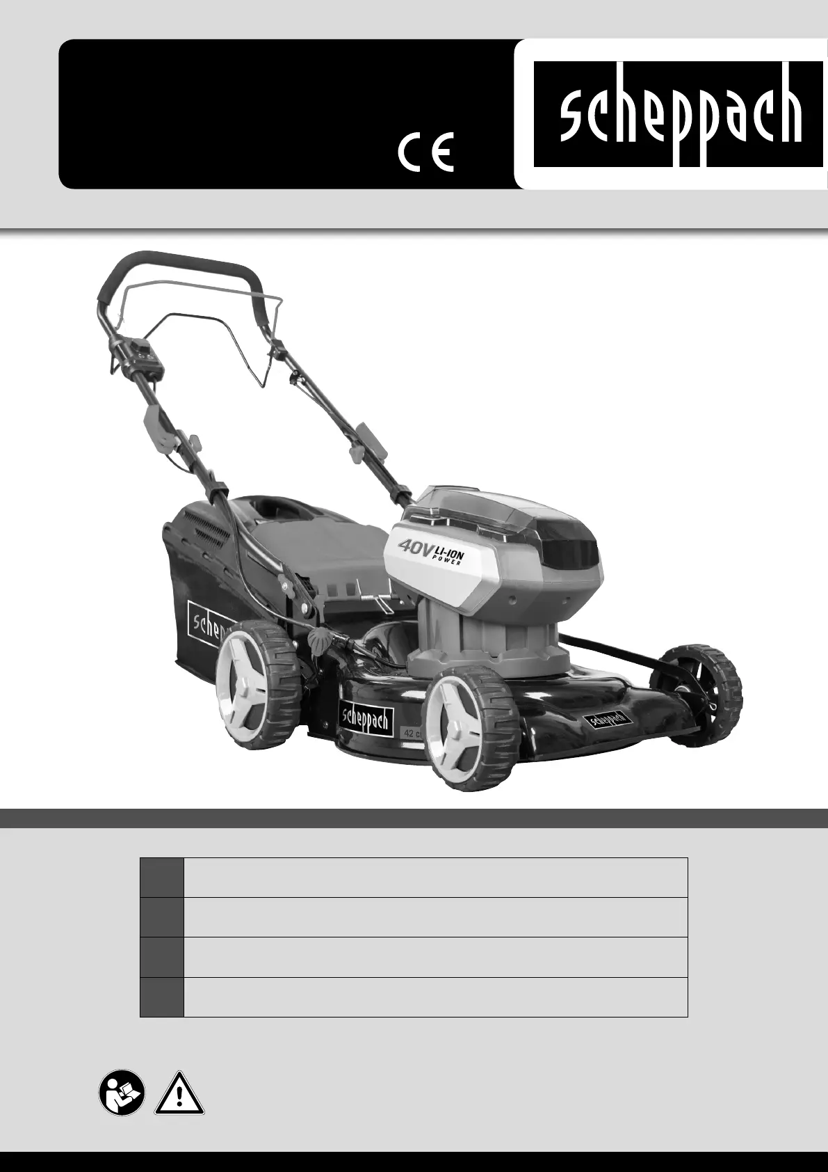 Lies die bedienungsanleitung für Scheppach MS40-42Li (52 Seiten) kostenlos online; sie gehört zur Kategorie Rasenmäher. Dieses Handbuch wurde von 8 Personen als hilfreich bewertet und erhielt im Schnitt 4.0 Sterne aus 2 Bewertungen. Hast du eine Frage zu Scheppach MS40-42Li oder möchtest du andere Nutzer dieses Produkts befragen? Stelle eine Frage