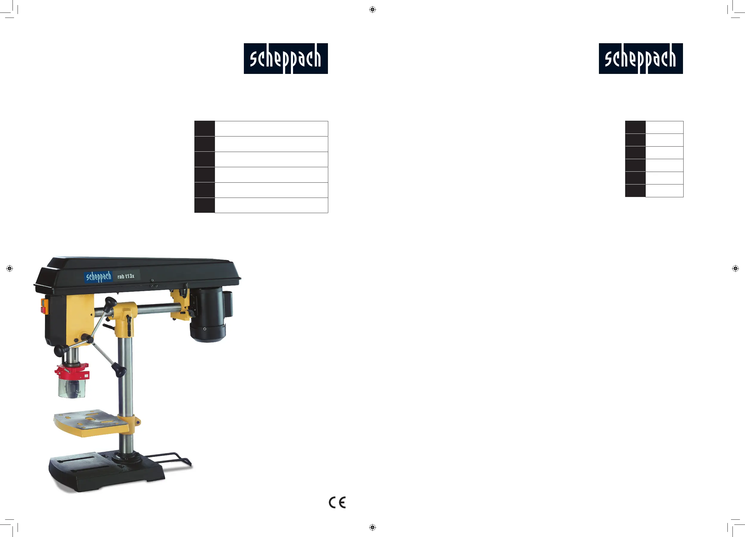 Lies die bedienungsanleitung für Scheppach rab t13x (54 Seiten) kostenlos online; sie gehört zur Kategorie Bohrmaschine. Dieses Handbuch wurde von 3 Personen als hilfreich bewertet und erhielt im Schnitt 5.0 Sterne aus 5 Bewertungen. Hast du eine Frage zu Scheppach rab t13x oder möchtest du andere Nutzer dieses Produkts befragen? Stelle eine Frage