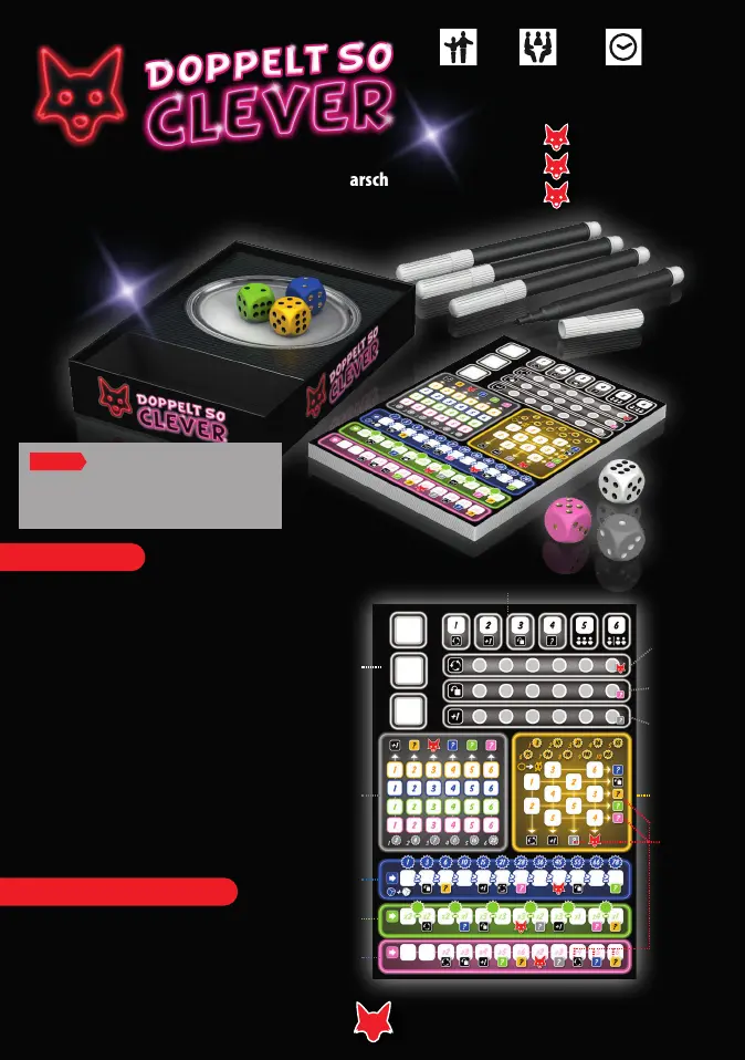 Lies die bedienungsanleitung für Schmidt Doppelt so clever (8 Seiten) kostenlos online; sie gehört zur Kategorie Brettspiel. Dieses Handbuch wurde von 9 Personen als hilfreich bewertet und erhielt im Schnitt 4.9 Sterne aus 9 Bewertungen. Hast du eine Frage zu Schmidt Doppelt so clever oder möchtest du andere Nutzer dieses Produkts befragen? Stelle eine Frage