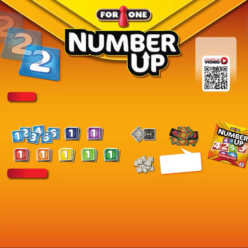 48 Number-UP-Karten, 1 Startkarte, 42 Zahlenchips, 24 Checkmarker, 1 Challenge-Heft