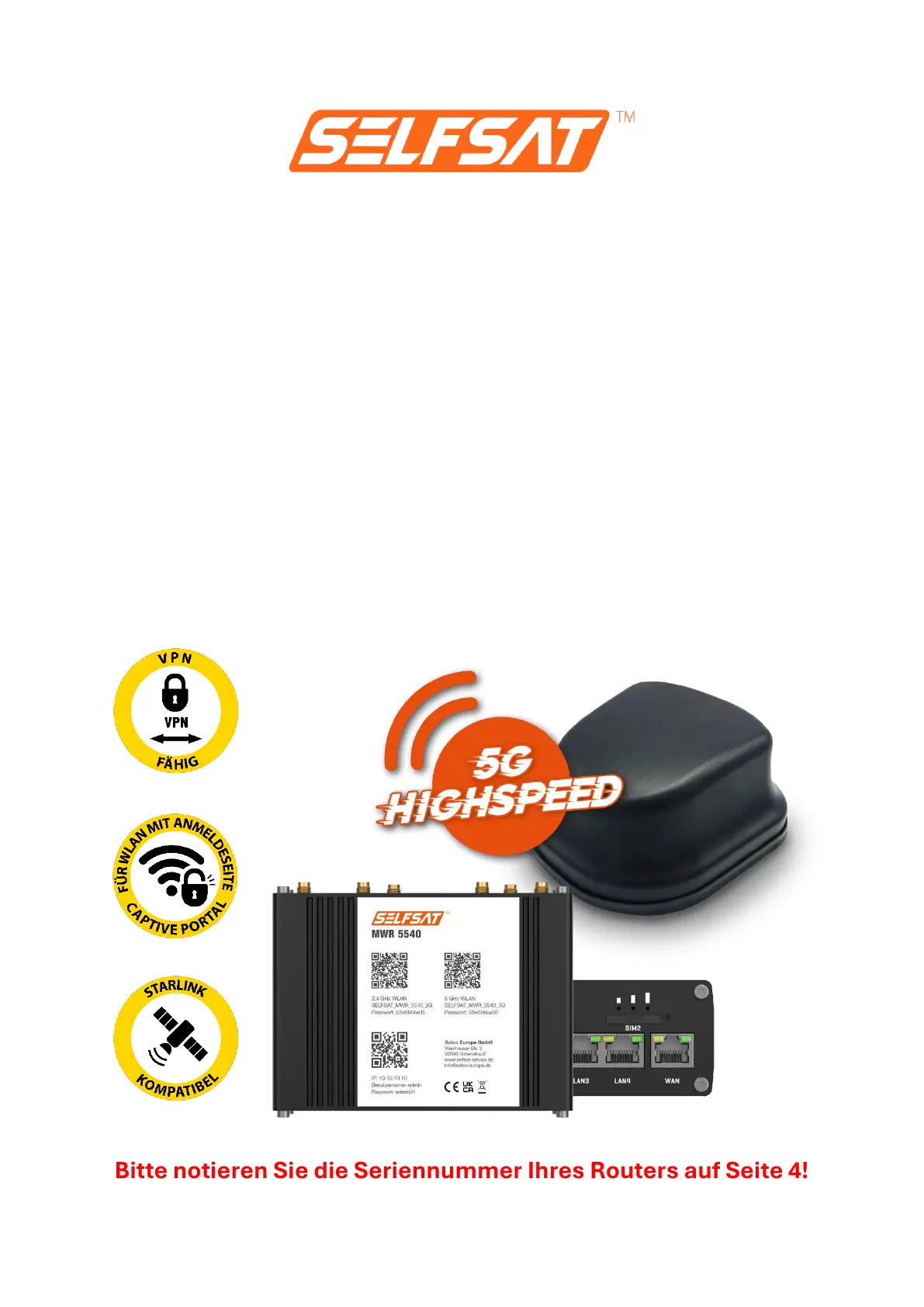 Bitte notieren Sie die Seriennummer Ihres Routers auf Seite 4!