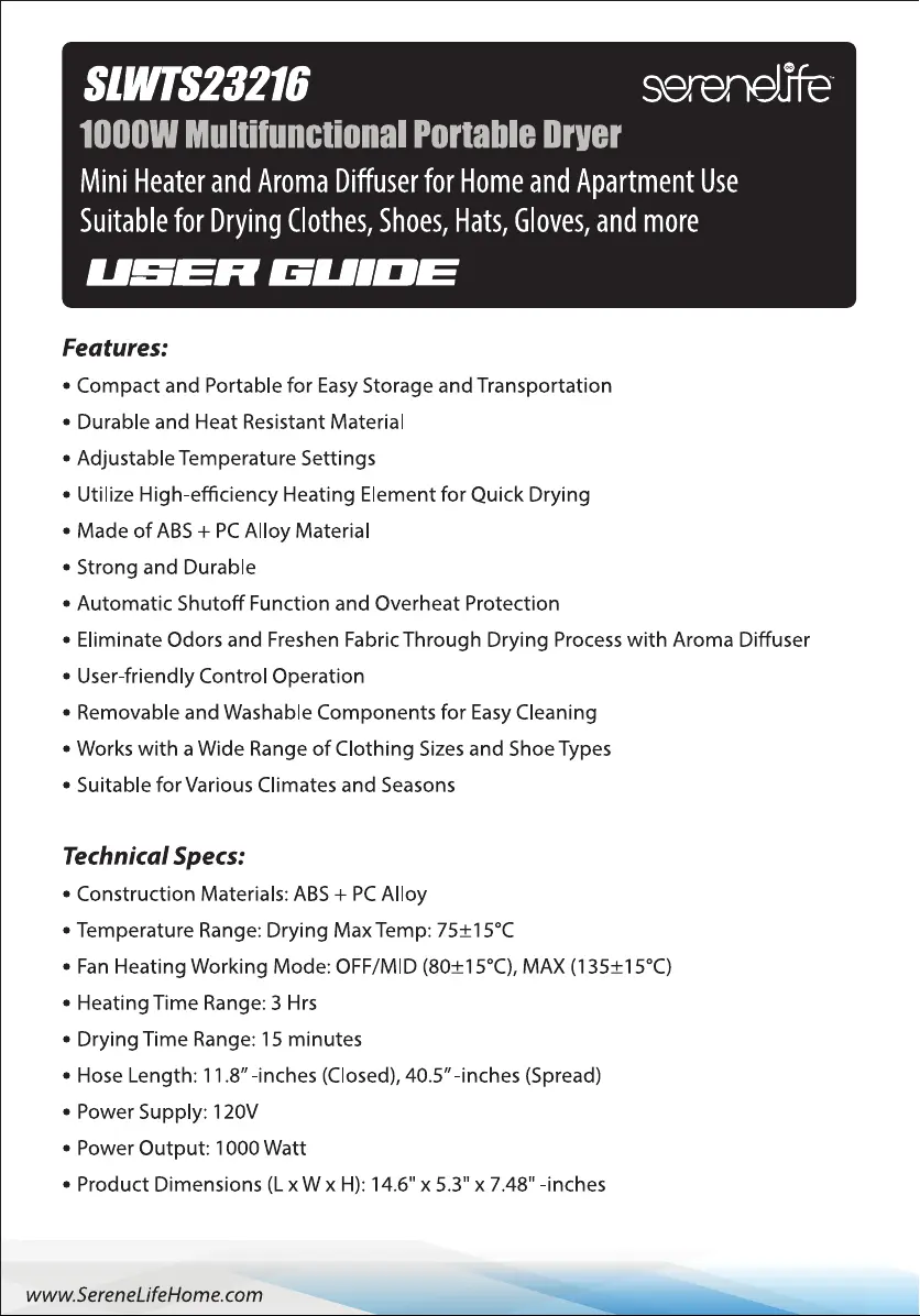 Lies die bedienungsanleitung für SereneLife SLWTS23216 (4 Seiten) kostenlos online; sie gehört zur Kategorie Luftentfeuchter. Dieses Handbuch wurde von 37 Personen als hilfreich bewertet und erhielt im Schnitt 4.5 Sterne aus 19 Bewertungen. Hast du eine Frage zu SereneLife SLWTS23216 oder möchtest du andere Nutzer dieses Produkts befragen? Stelle eine Frage