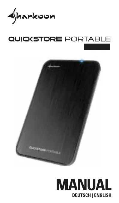 Lies die bedienungsanleitung für Sharkoon Quickstore Portable (7 Seiten) kostenlos online; sie gehört zur Kategorie Festplatte. Dieses Handbuch wurde von 43 Personen als hilfreich bewertet und erhielt im Schnitt 5.0 Sterne aus 9 Bewertungen. Hast du eine Frage zu Sharkoon Quickstore Portable oder möchtest du andere Nutzer dieses Produkts befragen? Stelle eine Frage