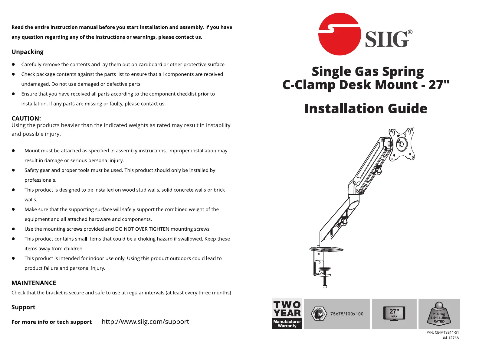 Lies die bedienungsanleitung für Siig CE-MT3311-S1 (2 Seiten) kostenlos online; sie gehört zur Kategorie Flachbildschirmunterstützung. Dieses Handbuch wurde von 3 Personen als hilfreich bewertet und erhielt im Schnitt 4.7 Sterne aus 8 Bewertungen. Hast du eine Frage zu Siig CE-MT3311-S1 oder möchtest du andere Nutzer dieses Produkts befragen? Stelle eine Frage