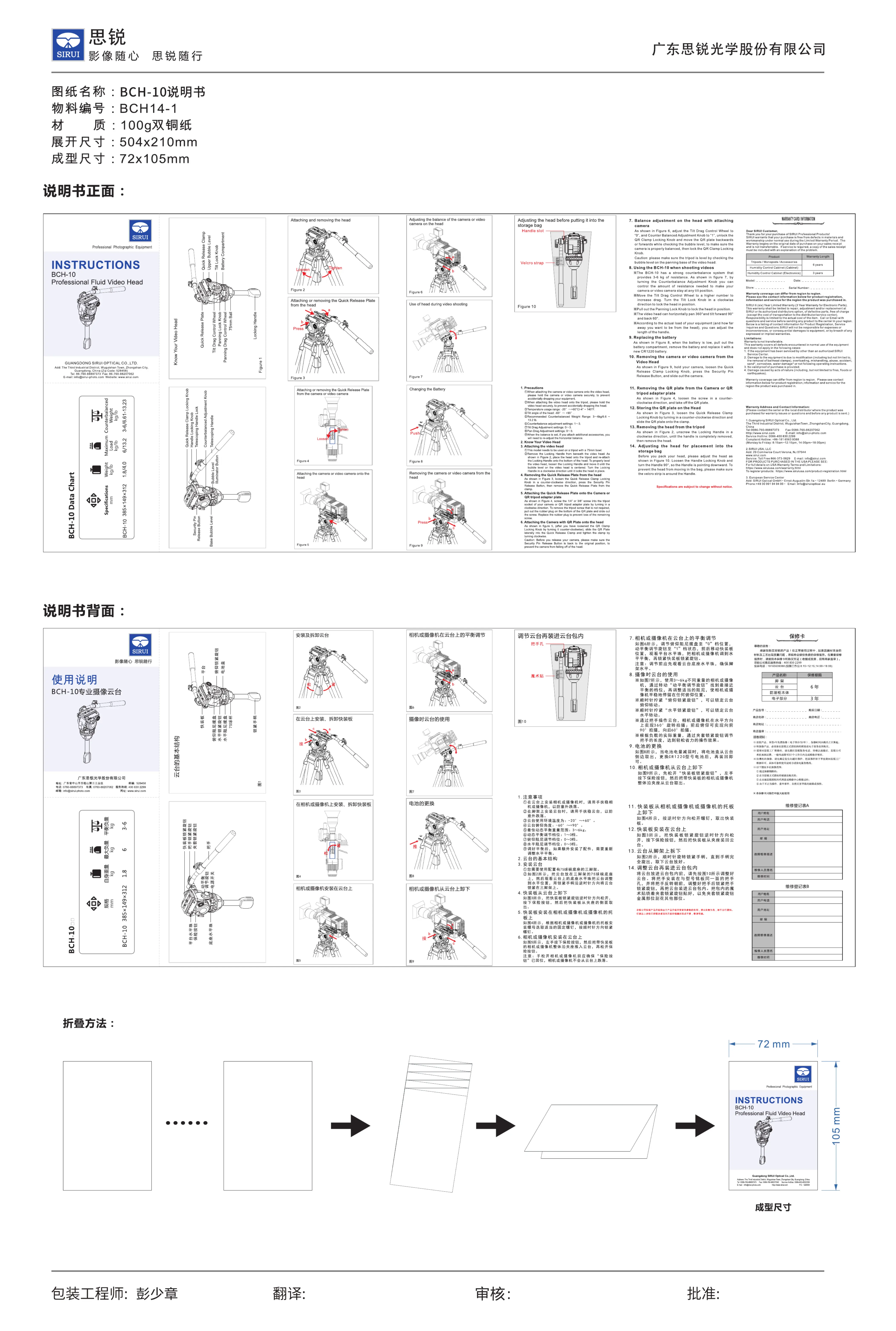 Sirui BCH-10 Bedienungsanleitung