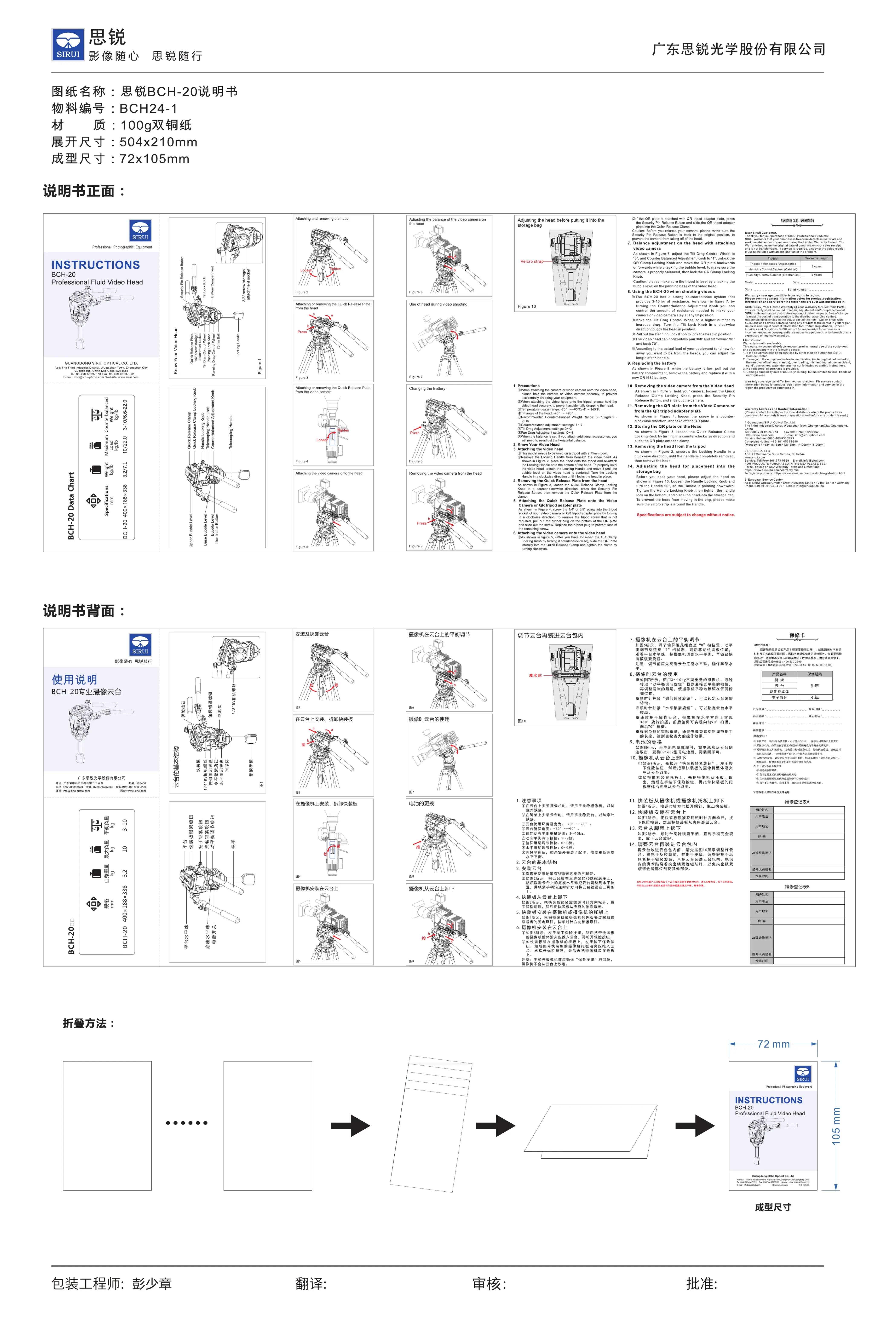 Sirui BCH-20 Bedienungsanleitung