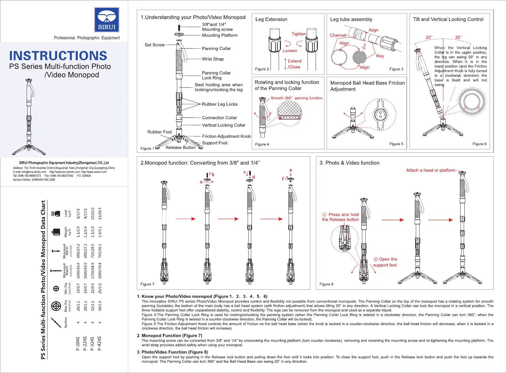 Sirui P-204SR Bedienungsanleitung