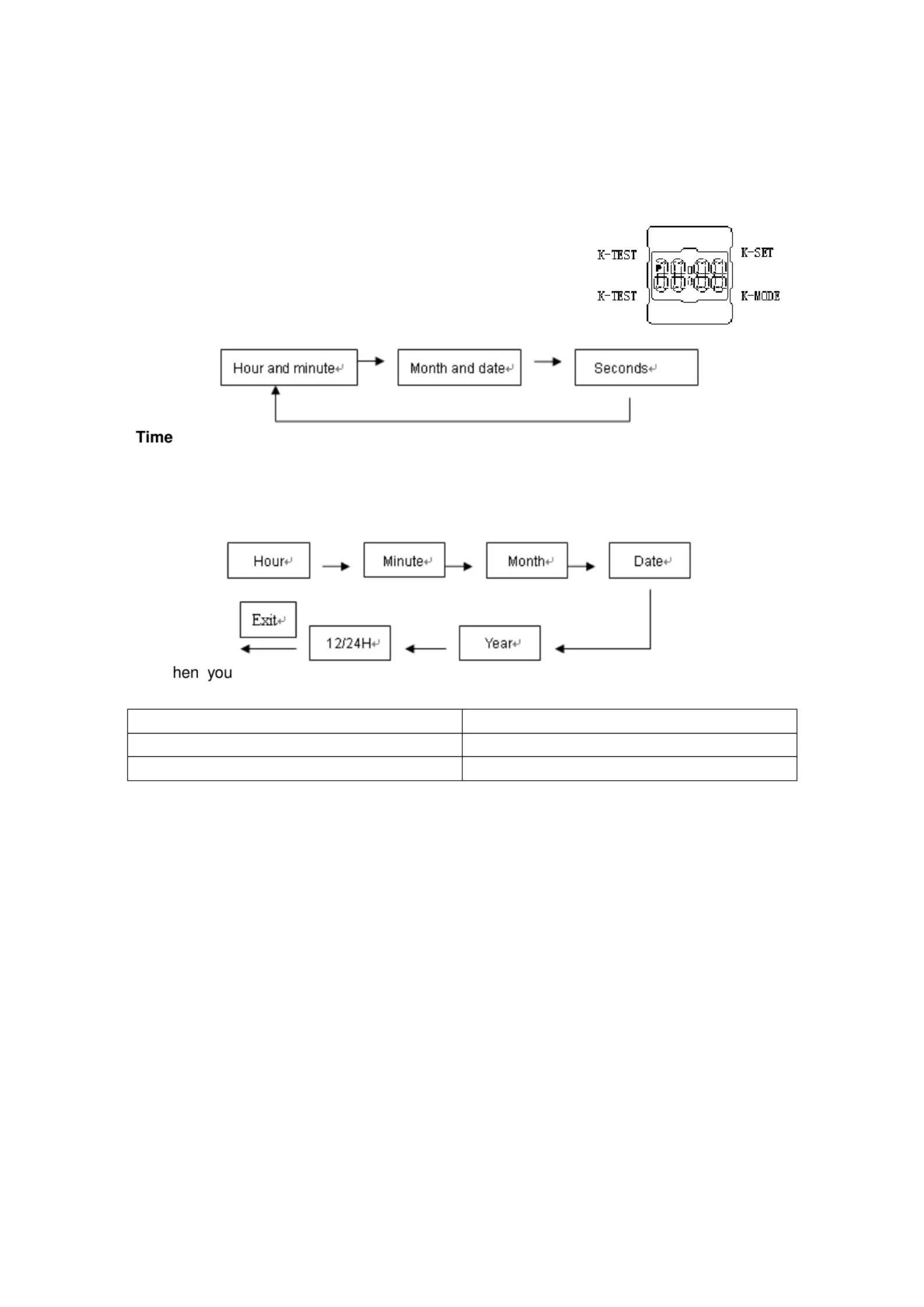 2. Press "K-SET" to adjust the flashing data show as following Sequence:
