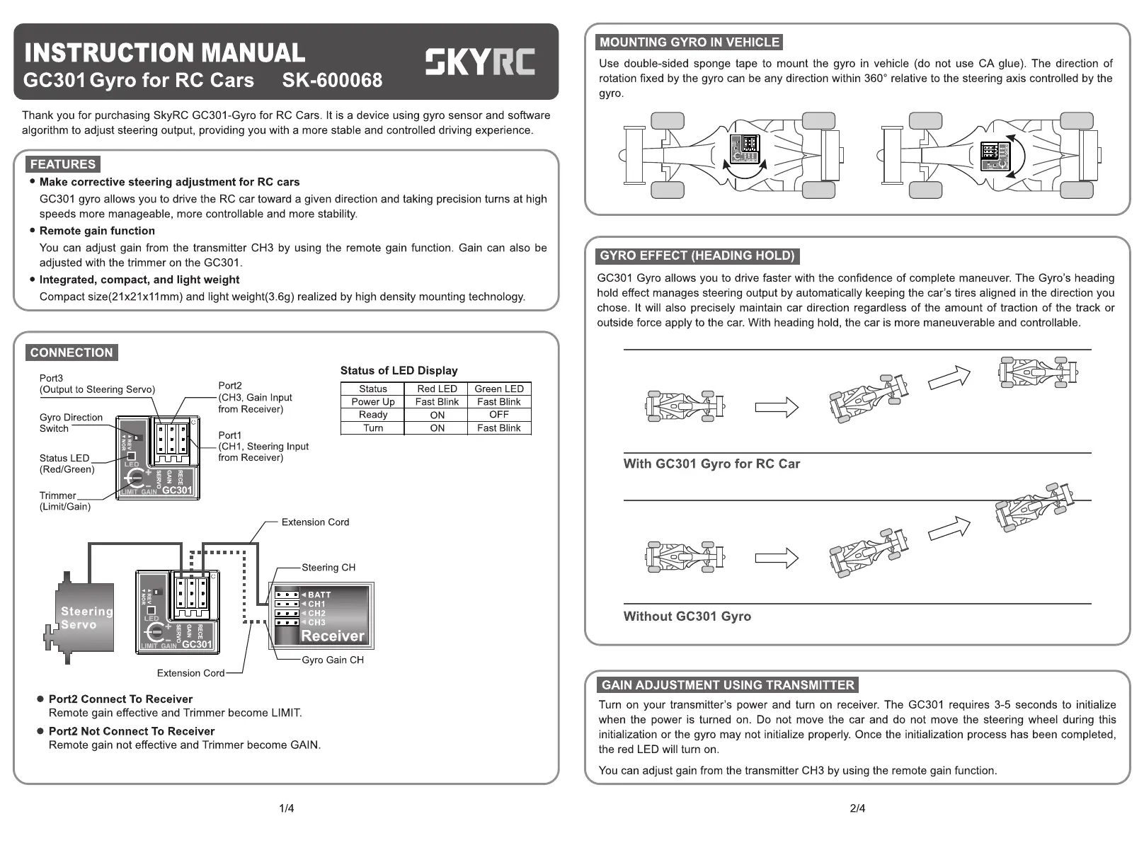 Lies die bedienungsanleitung für SkyRC GC301 (2 Seiten) kostenlos online; sie gehört zur Kategorie Nicht kategorisiert. Dieses Handbuch wurde von 3 Personen als hilfreich bewertet und erhielt im Schnitt 4.6 Sterne aus 2 Bewertungen. Hast du eine Frage zu SkyRC GC301 oder möchtest du andere Nutzer dieses Produkts befragen? Stelle eine Frage