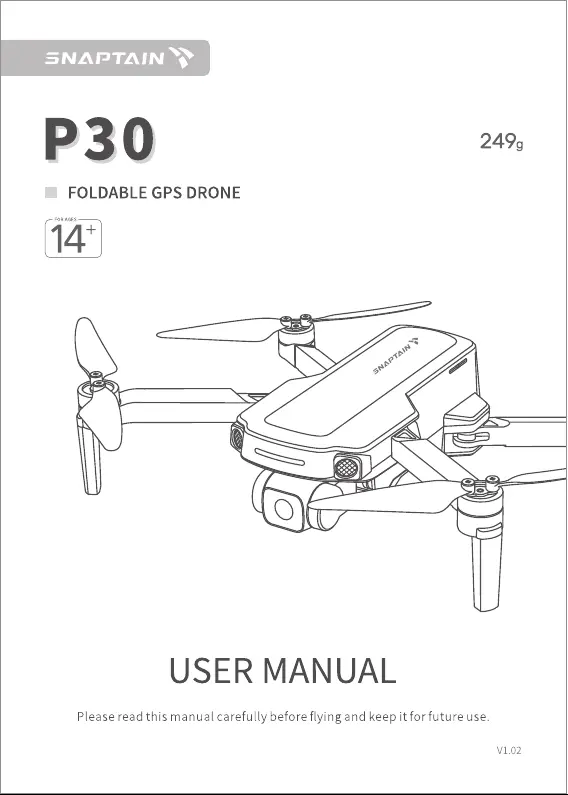 Lies die bedienungsanleitung für Snaptain P30 (38 Seiten) kostenlos online; sie gehört zur Kategorie Drohne. Dieses Handbuch wurde von 46 Personen als hilfreich bewertet und erhielt im Schnitt 3.8 Sterne aus 23.5 Bewertungen. Hast du eine Frage zu Snaptain P30 oder möchtest du andere Nutzer dieses Produkts befragen? Stelle eine Frage