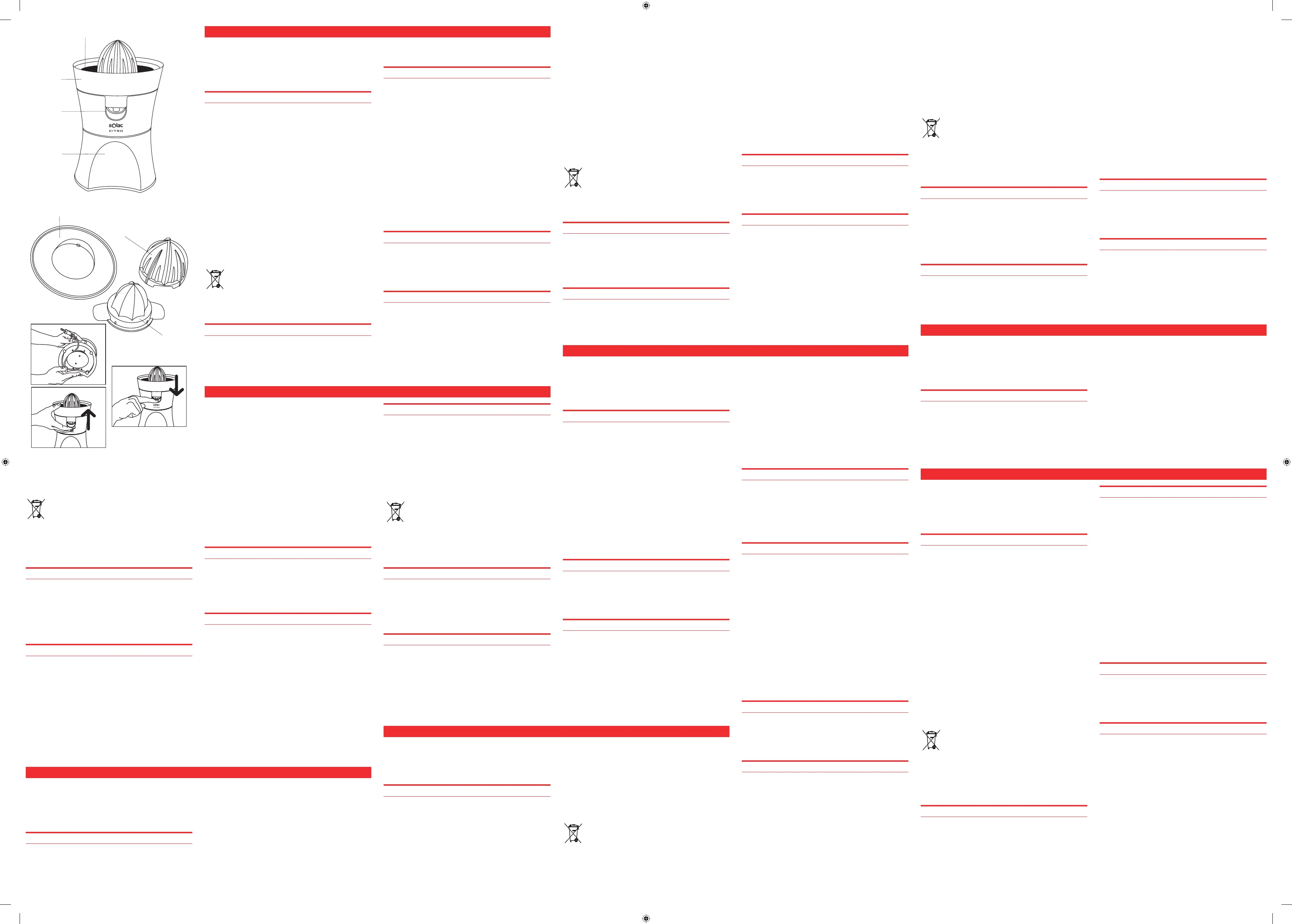 • 1/ Antes de usar o espremedor pela primeira vez, lave todas as peças extraíveis. Não lave a