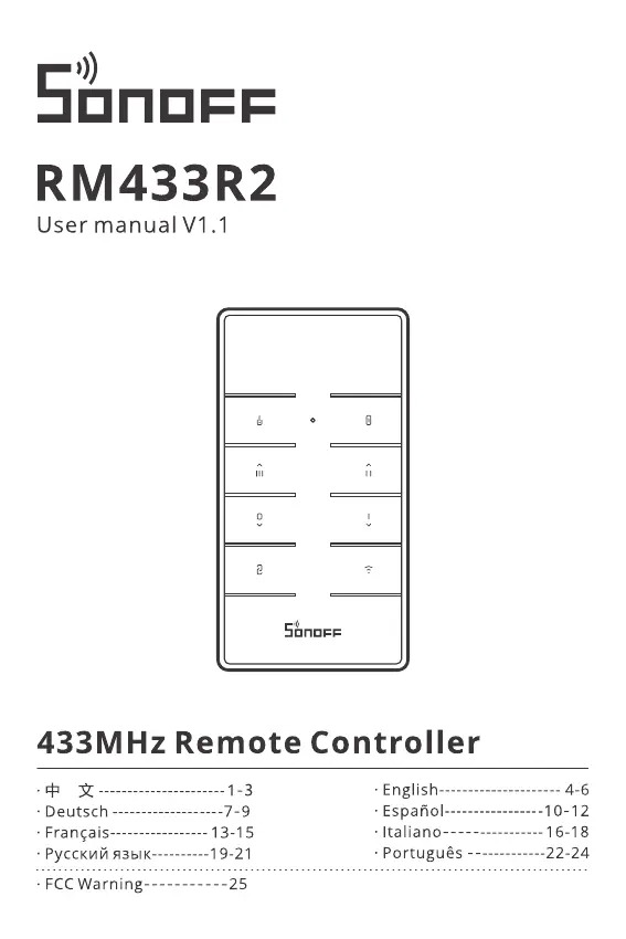 Lies die bedienungsanleitung für Sonoff RM433R2 (30 Seiten) kostenlos online; sie gehört zur Kategorie Nicht kategorisiert. Dieses Handbuch wurde von 3 Personen als hilfreich bewertet und erhielt im Schnitt 4.5 Sterne aus 6 Bewertungen. Hast du eine Frage zu Sonoff RM433R2 oder möchtest du andere Nutzer dieses Produkts befragen? Stelle eine Frage