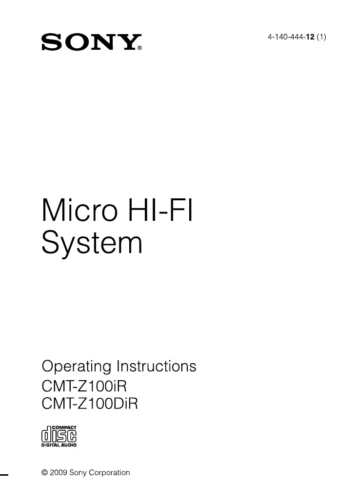 Lies die bedienungsanleitung für Sony CMT-Z100DiR (60 Seiten) kostenlos online; sie gehört zur Kategorie Hi-Fi-Anlage. Dieses Handbuch wurde von 7 Personen als hilfreich bewertet und erhielt im Schnitt 4.9 Sterne aus 4 Bewertungen. Hast du eine Frage zu Sony CMT-Z100DiR oder möchtest du andere Nutzer dieses Produkts befragen? Stelle eine Frage