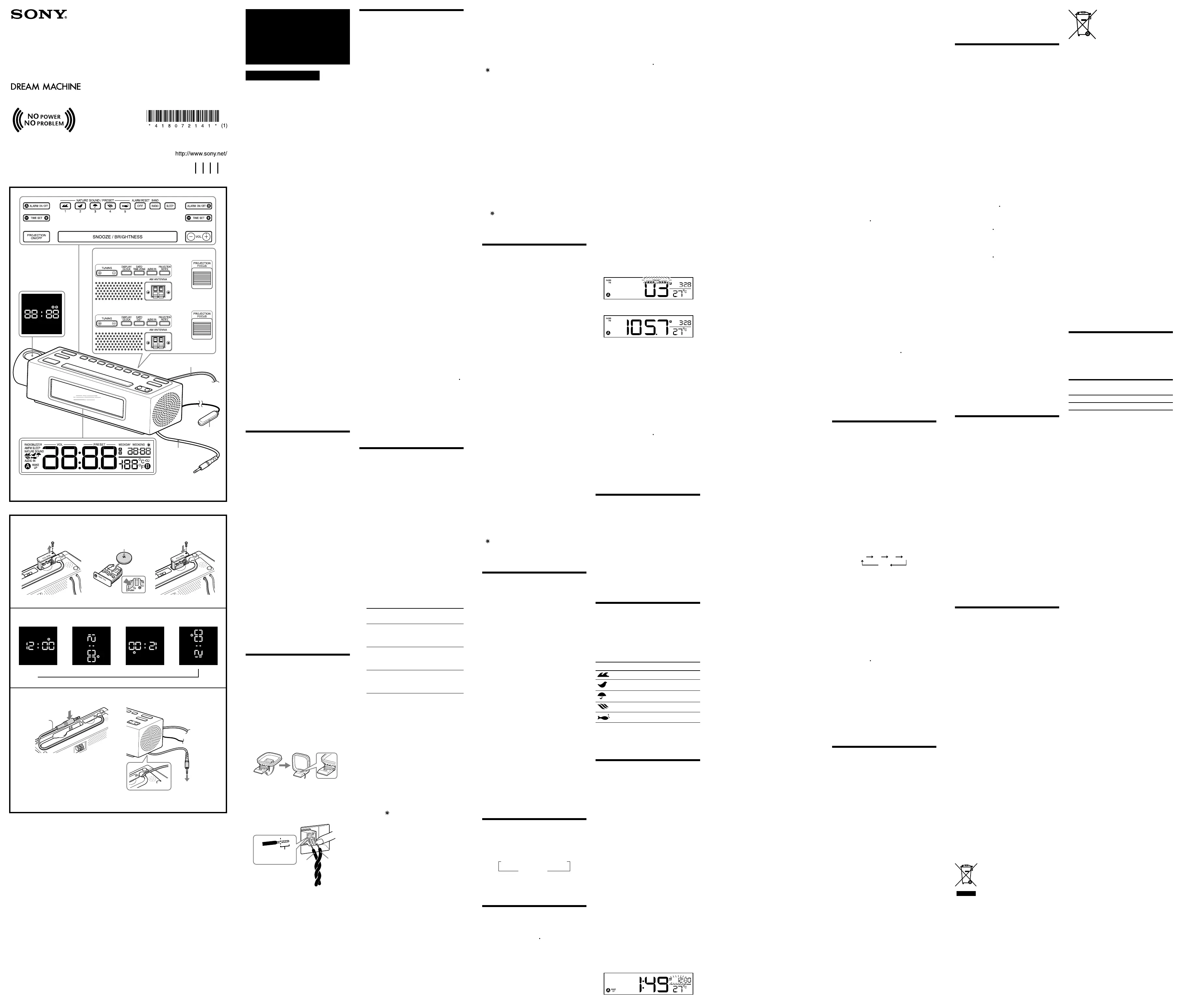 Bedienungsanleitung Uhrenradios Sony