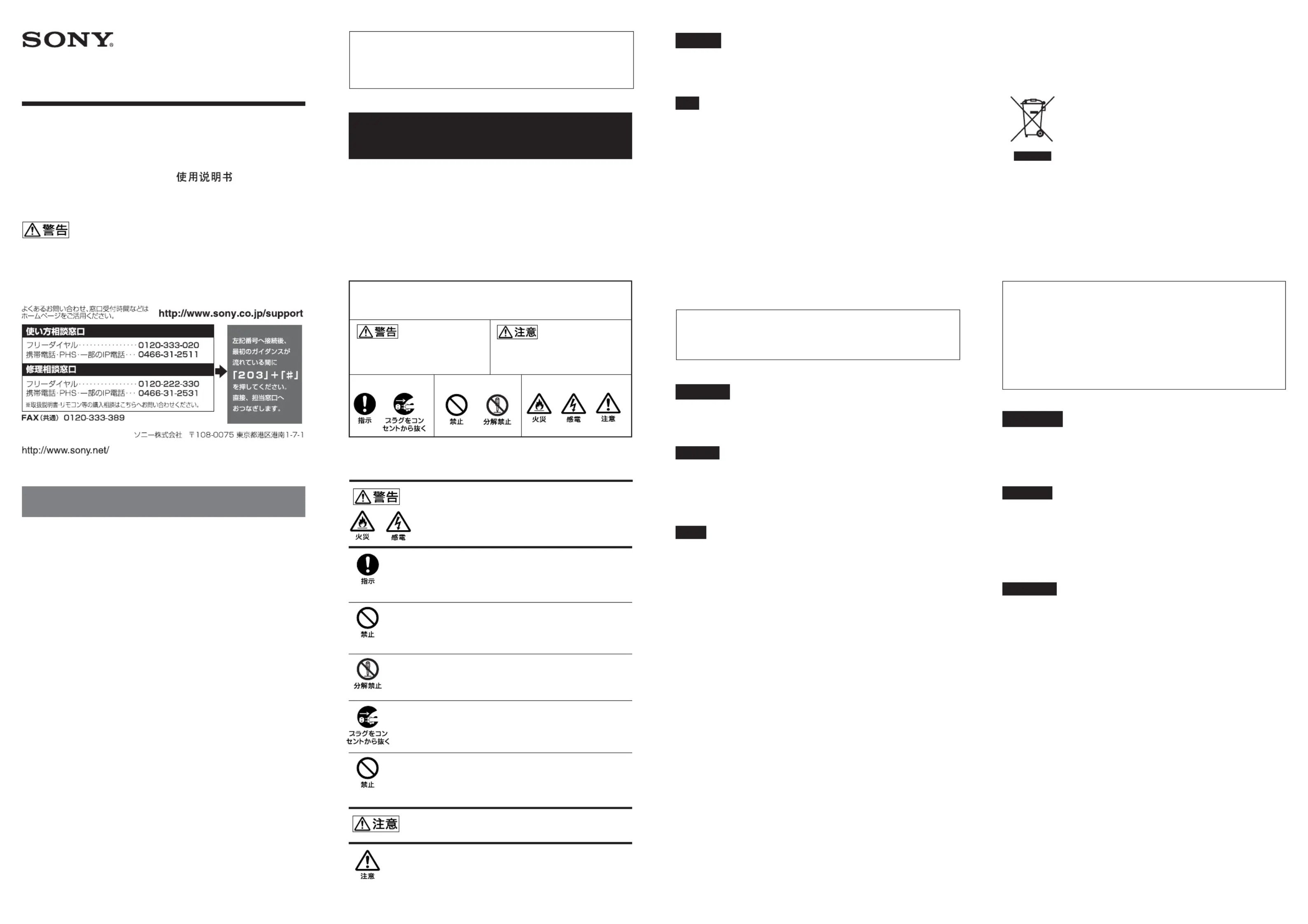 ソニー製品は安全に充分に配慮して設計されています。しかし、まち