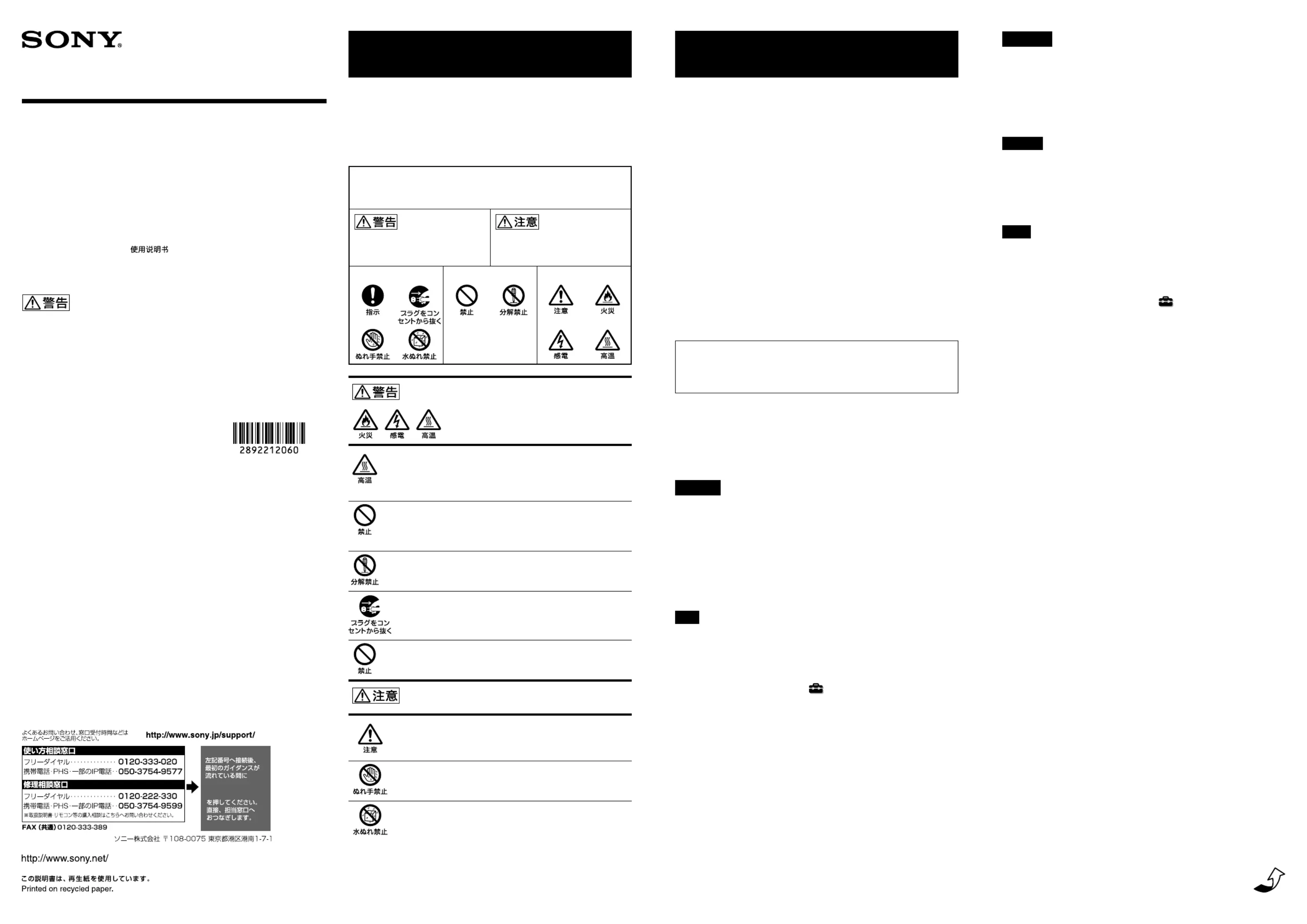 ソニーの相談窓口にご相談ください。(裏表紙)