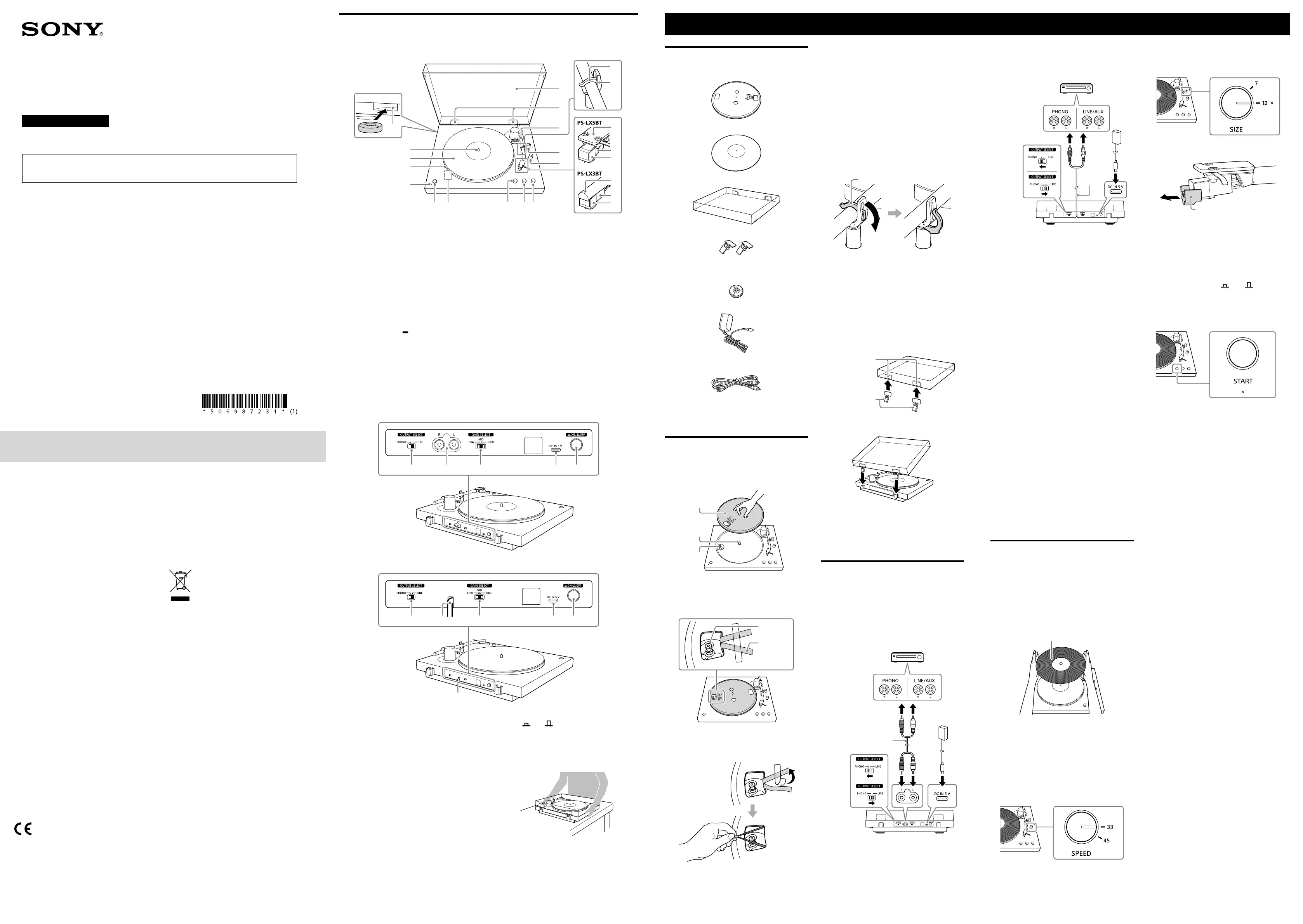 Lies die bedienungsanleitung für Sony PS-LX5BT (2 Seiten) kostenlos online; sie gehört zur Kategorie Plattenspieler. Dieses Handbuch wurde von 2 Personen als hilfreich bewertet und erhielt im Schnitt 4.7 Sterne aus 5 Bewertungen. Hast du eine Frage zu Sony PS-LX5BT oder möchtest du andere Nutzer dieses Produkts befragen? Stelle eine Frage