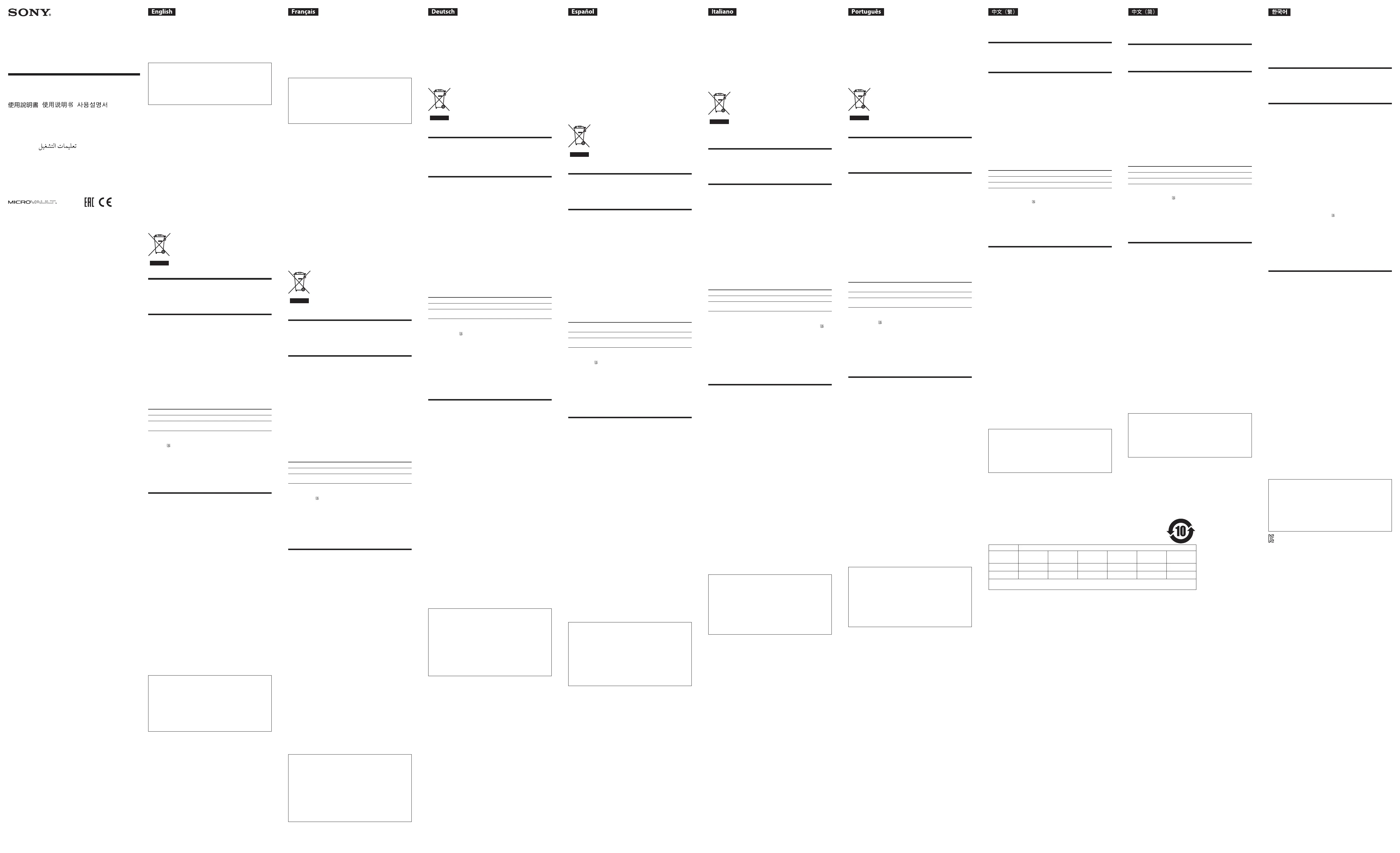 European Union legislation shall be addressed to the authorized representative, Sony